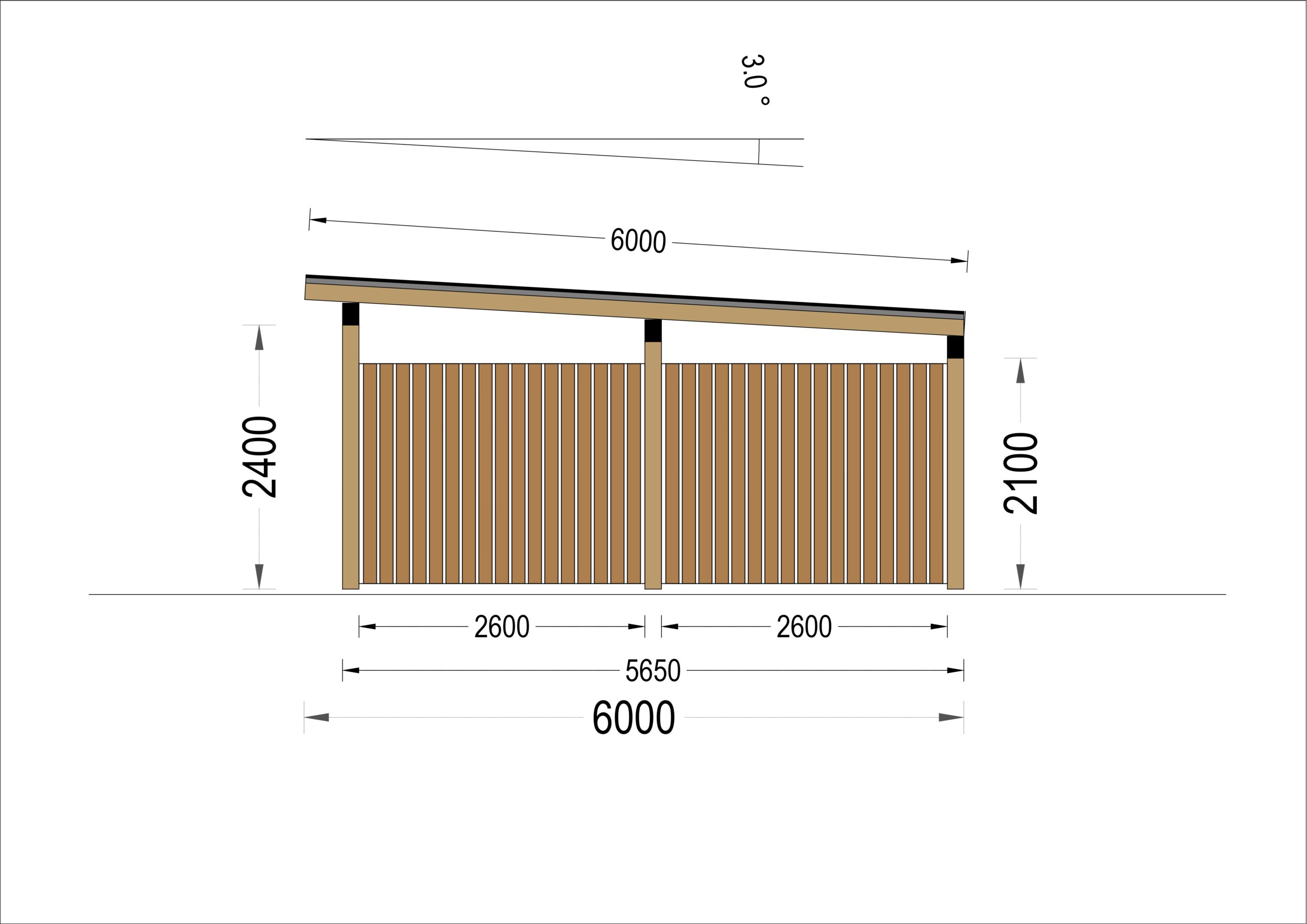 Doppelgarage aus Holz mit Pultdach (44 mm), 6×5 m, 30 m²