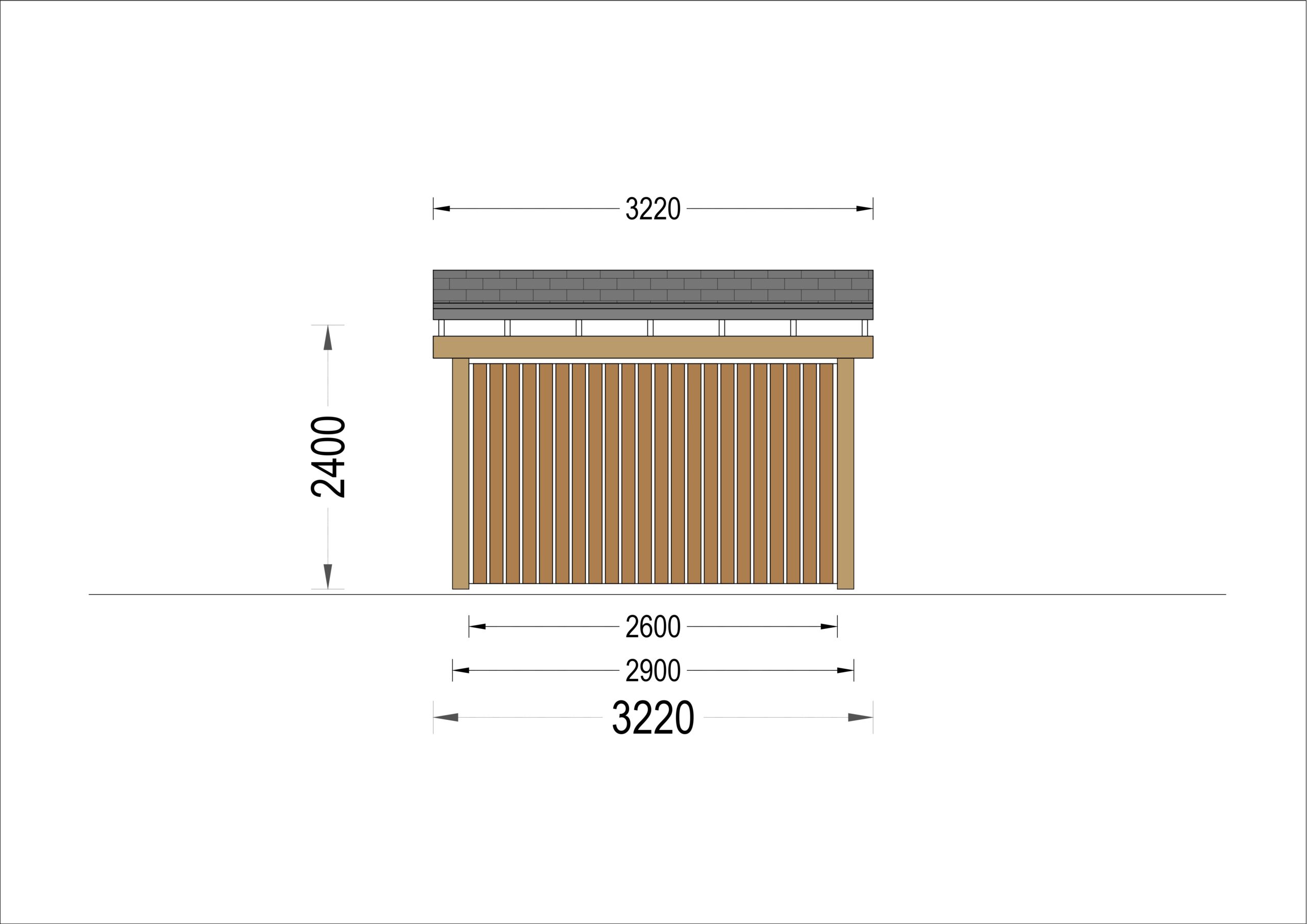 Carport aus Holz mit L-förmiger Wand LISA, 3.2×6 m