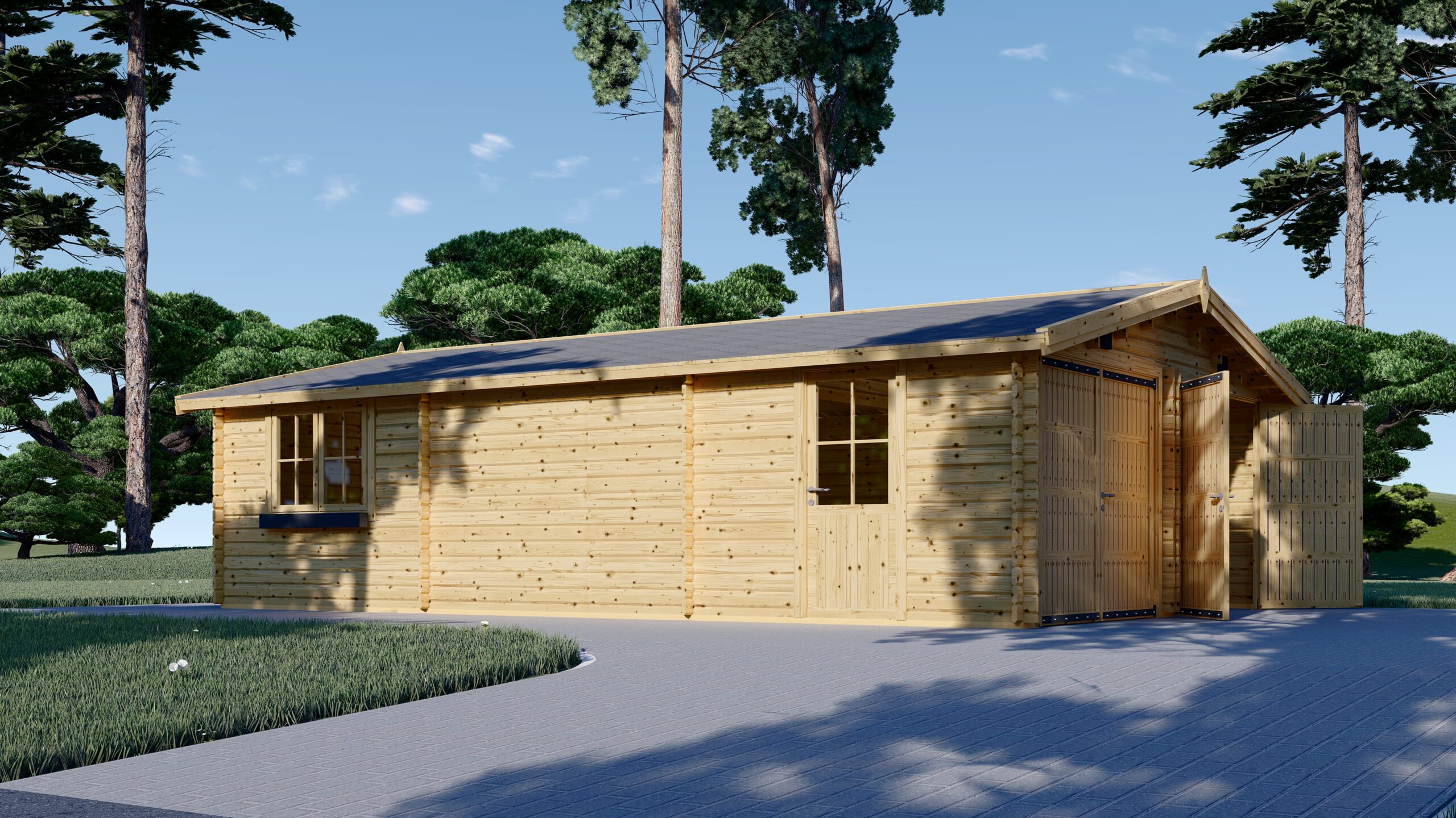 Holzgarage mit (44 mm) 4×6 m mit Doppelcarport 5.5×6 m