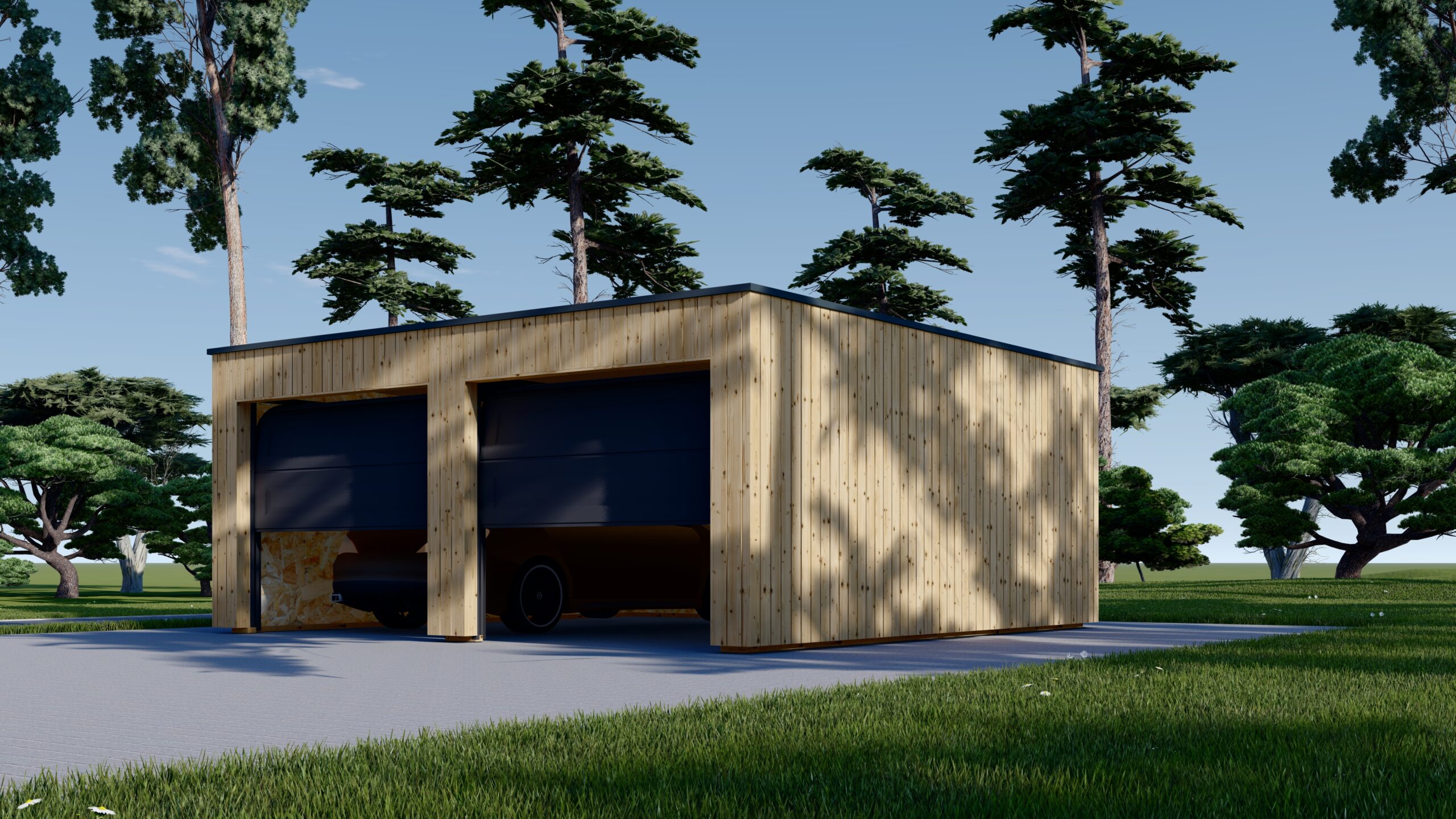 Doppelgarage mit Flachdach (34mm + Holzverschalung), 6x6m, 36m²