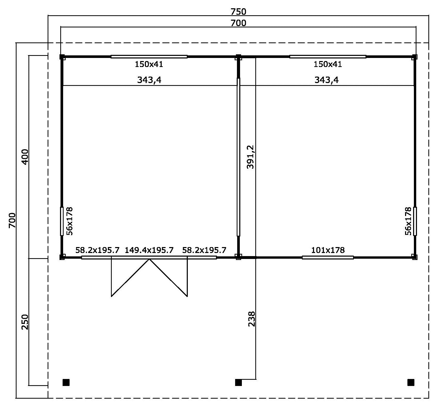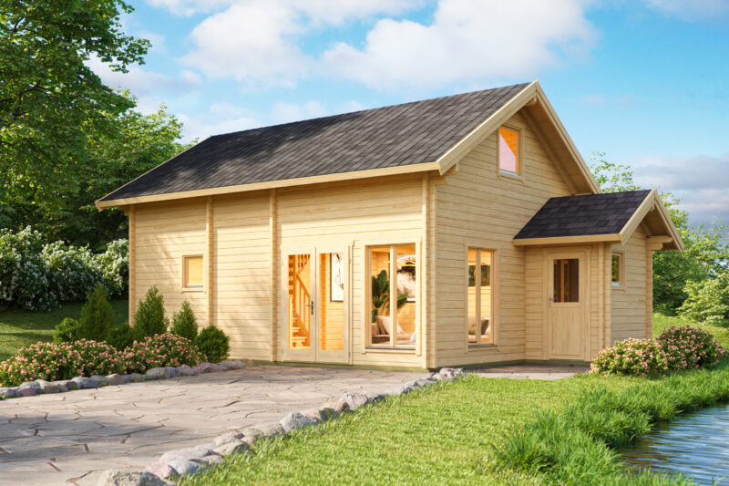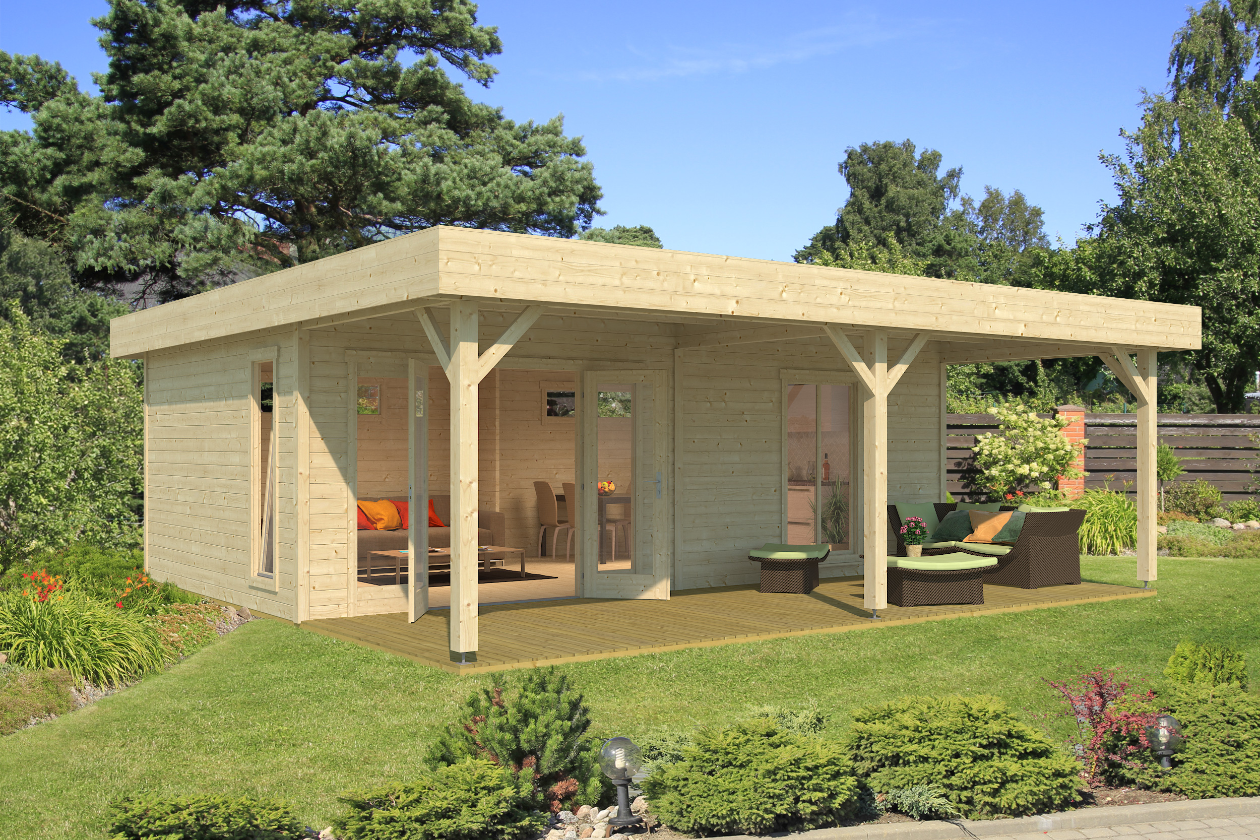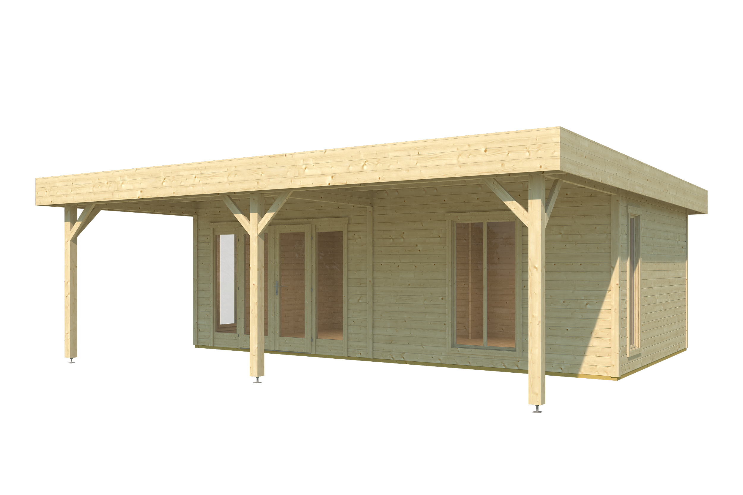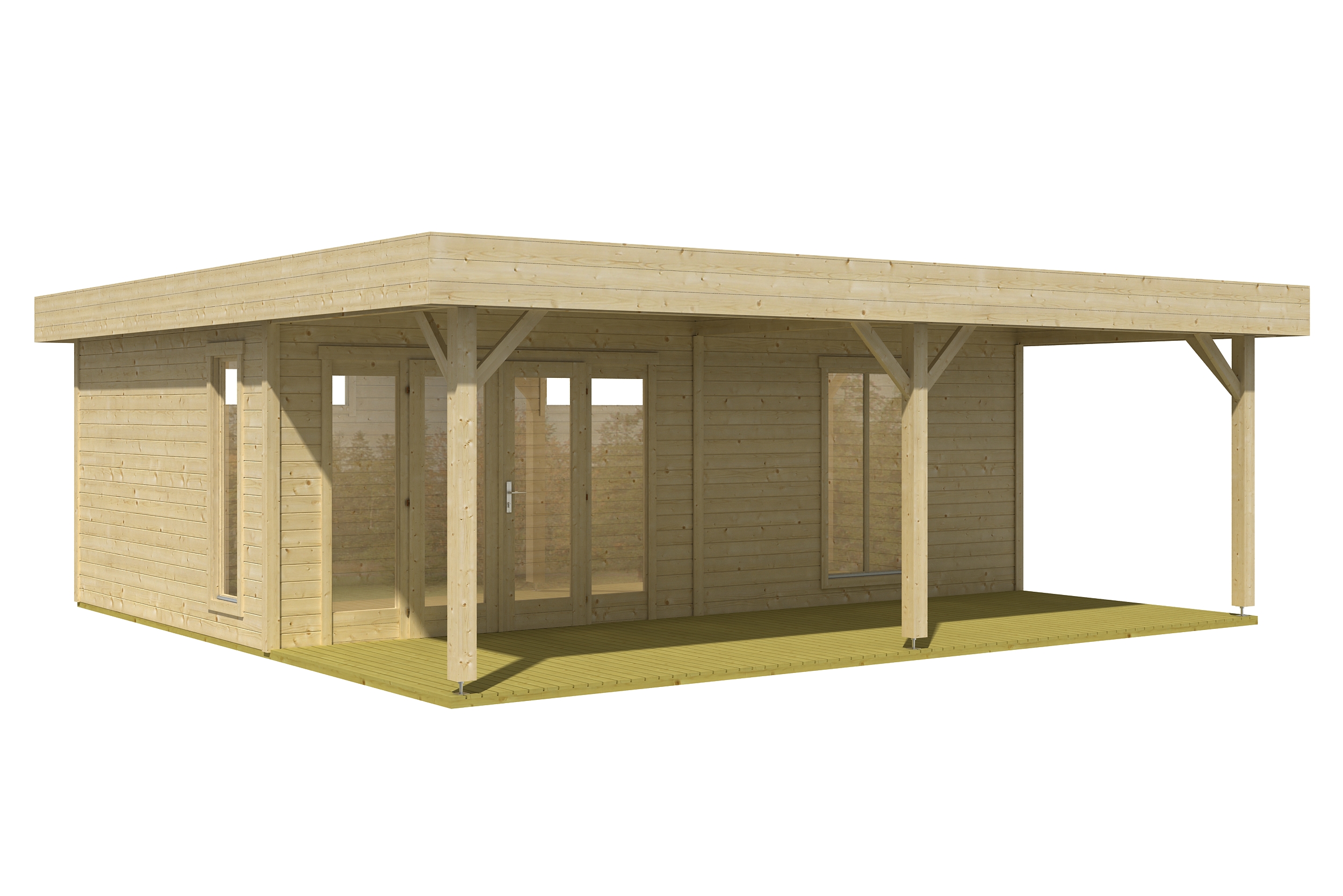 Ferienhaus mit Unterdach 44 mm, Fundamentmass 4000×7000, Naturbelassen