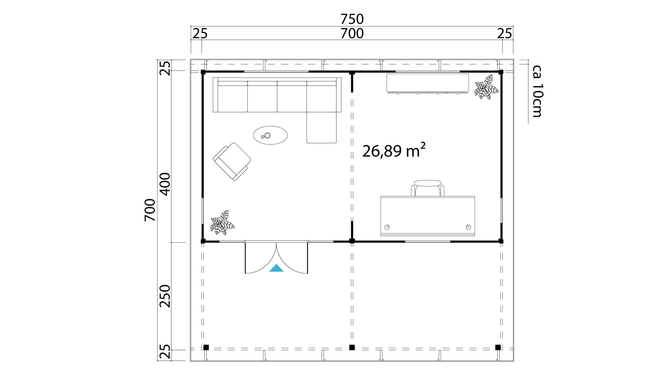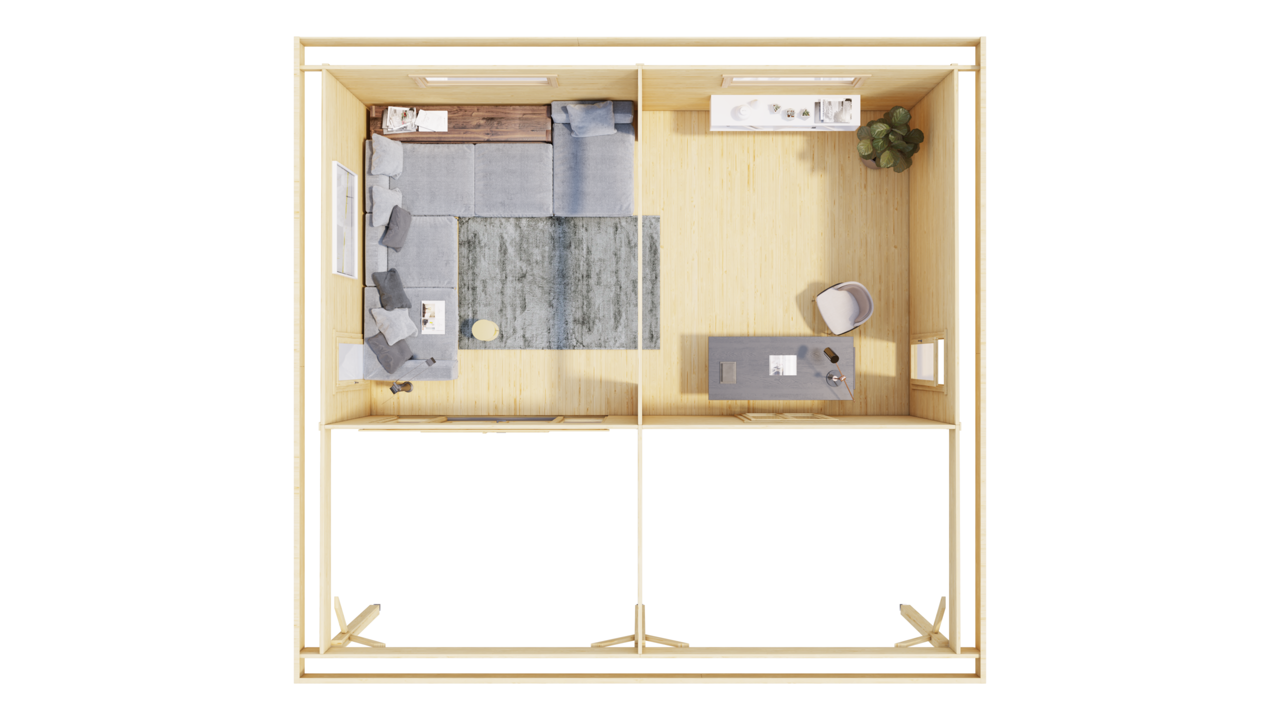 Sie lieben es schlicht und modern? Dieses zeitlose Ferienhausmodell in minimalistischem Design besticht mit einer Wohnfläche von fast 27 m2. Auf kleinstem Raum hat man genug Platz, sich zu entfalten: Wie wäre es zum Beispiel mit einem Grillabend mit Freunden, einem eigenen Homeoffice-Bereich oder einer gemütlichen Leseecke? Sie entscheiden, wie Sie Brava nutzen möchten. Das große Vordach gewährt viel zusätzliche überdachte Fläche und erweitert so den Raum für „mehr Leben im Garten“.