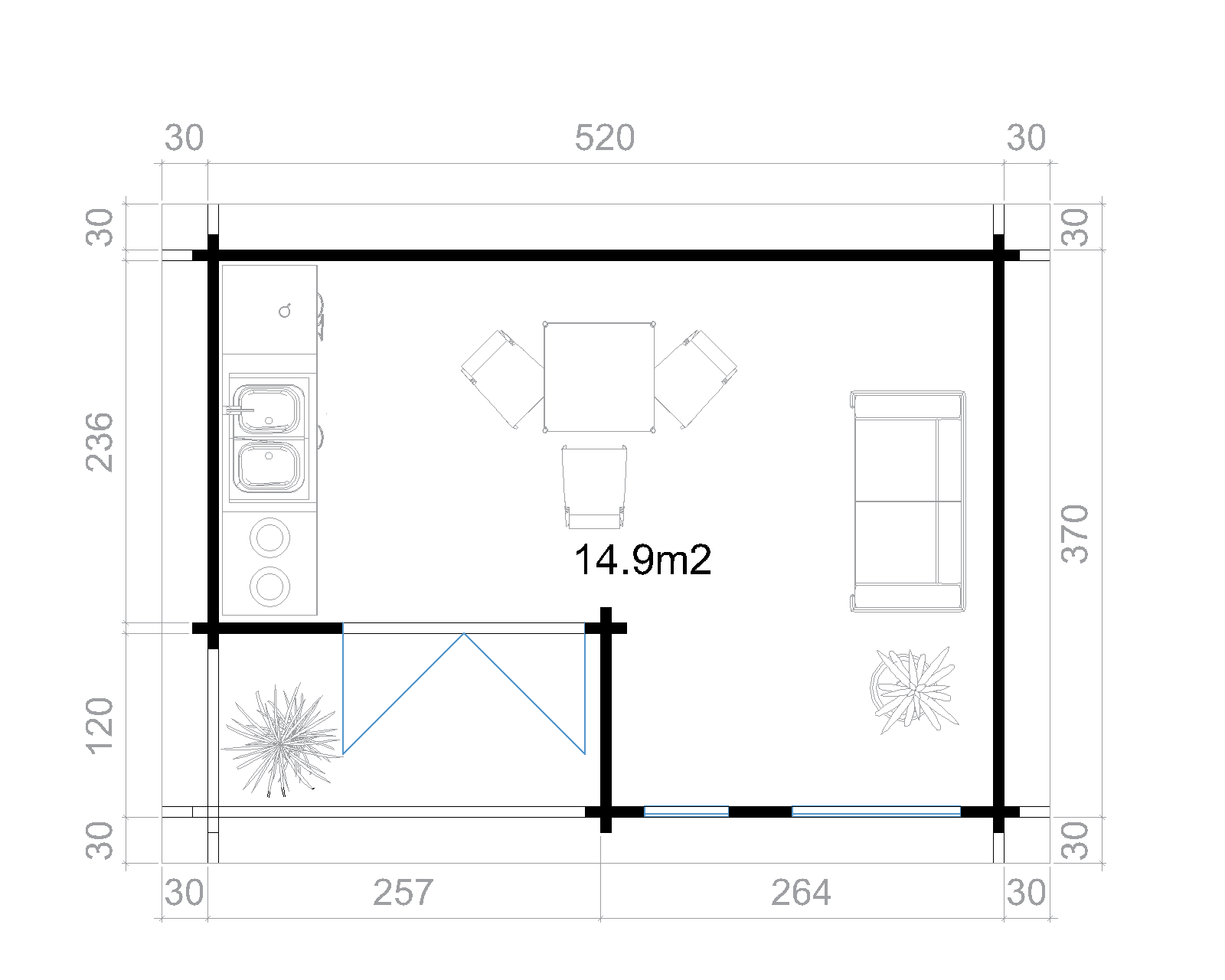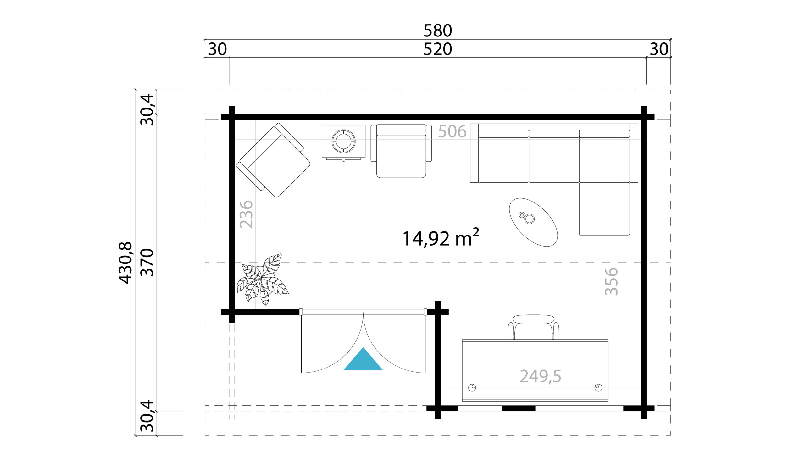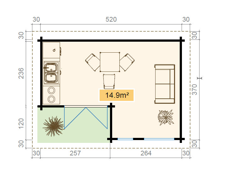 Ferienhaus 70 mm, Fundamentmass 3700×5200, Naturbelassen