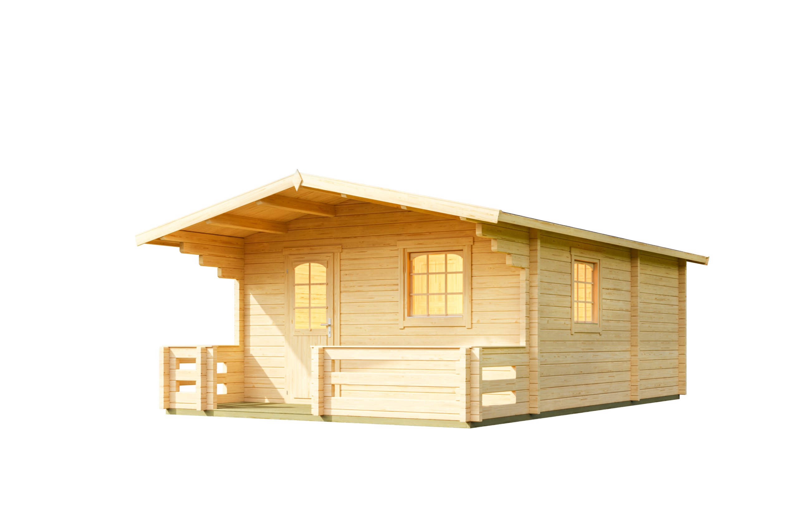 Ferienhaus mit Terrasse und Geländer 70 mm, Fundamentmass 4200×5400, Naturbelassen
