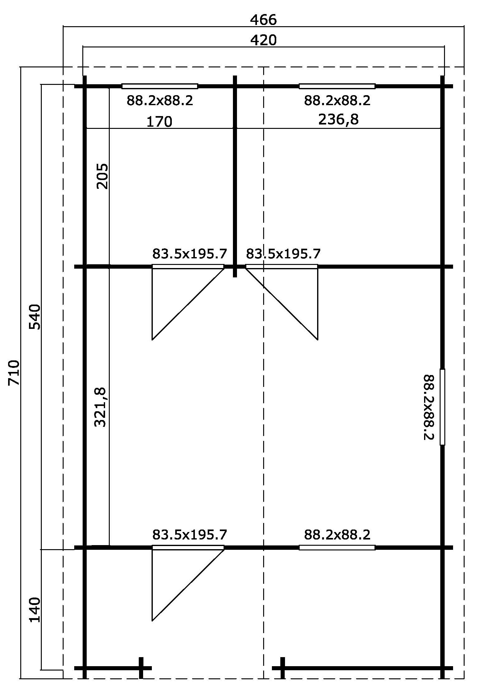 Erhalten Sie ein Dach, das Beständigkeit verspricht! Unsere verstärkte Dachkonstruktion setzt auf robuste Giebel und Dachsparren (45 mm x 135 mm oder 45 mm x 270 mm), um eine dauerhafte Stabilität zu gewährleisten und Ihr Dach vor möglichen Verformungen zu schützen.