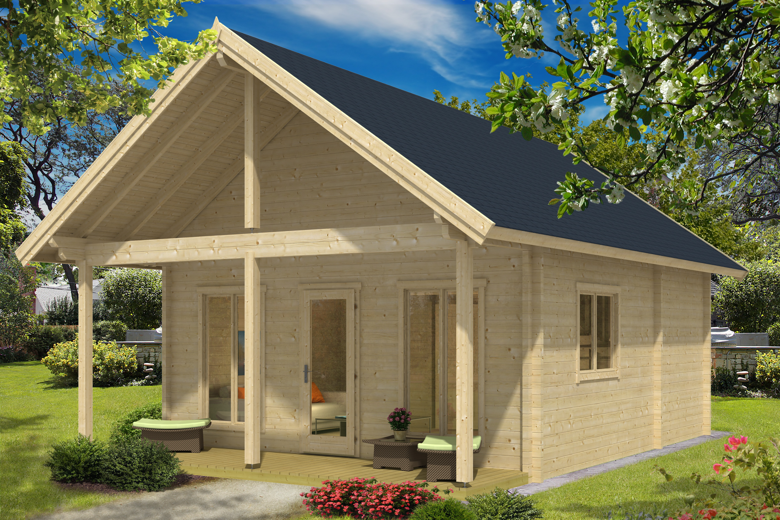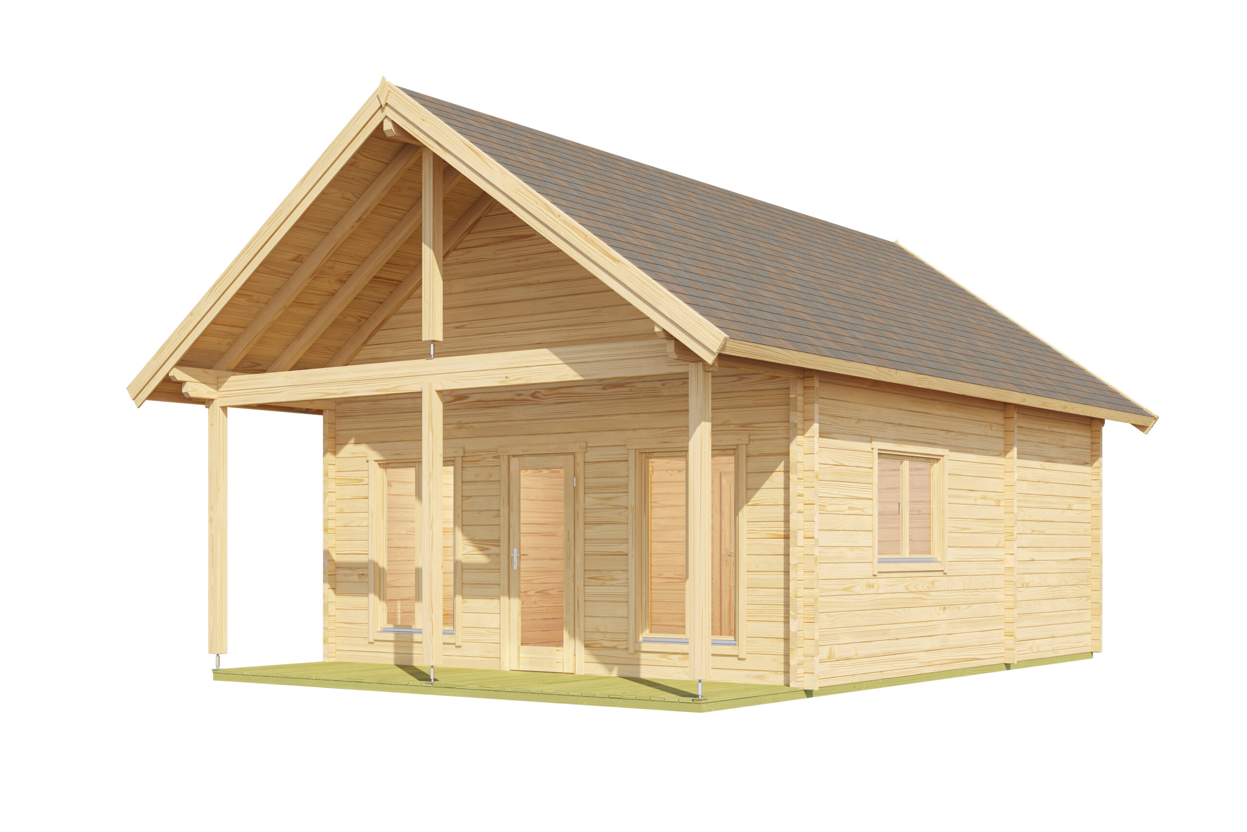 Ferienhaus mit Terrasse 92 mm, Fundamentmass 5400×6400, Naturbelassen