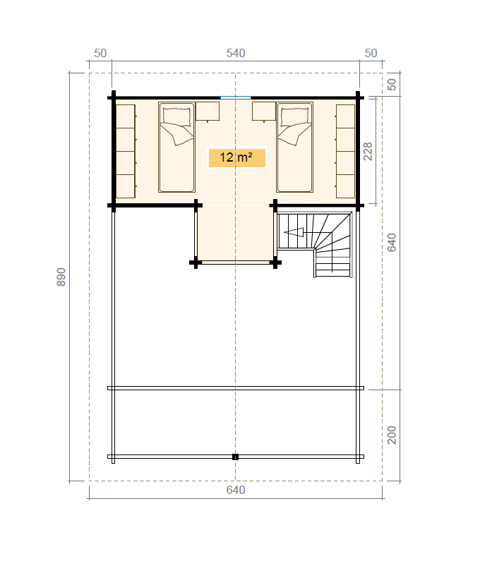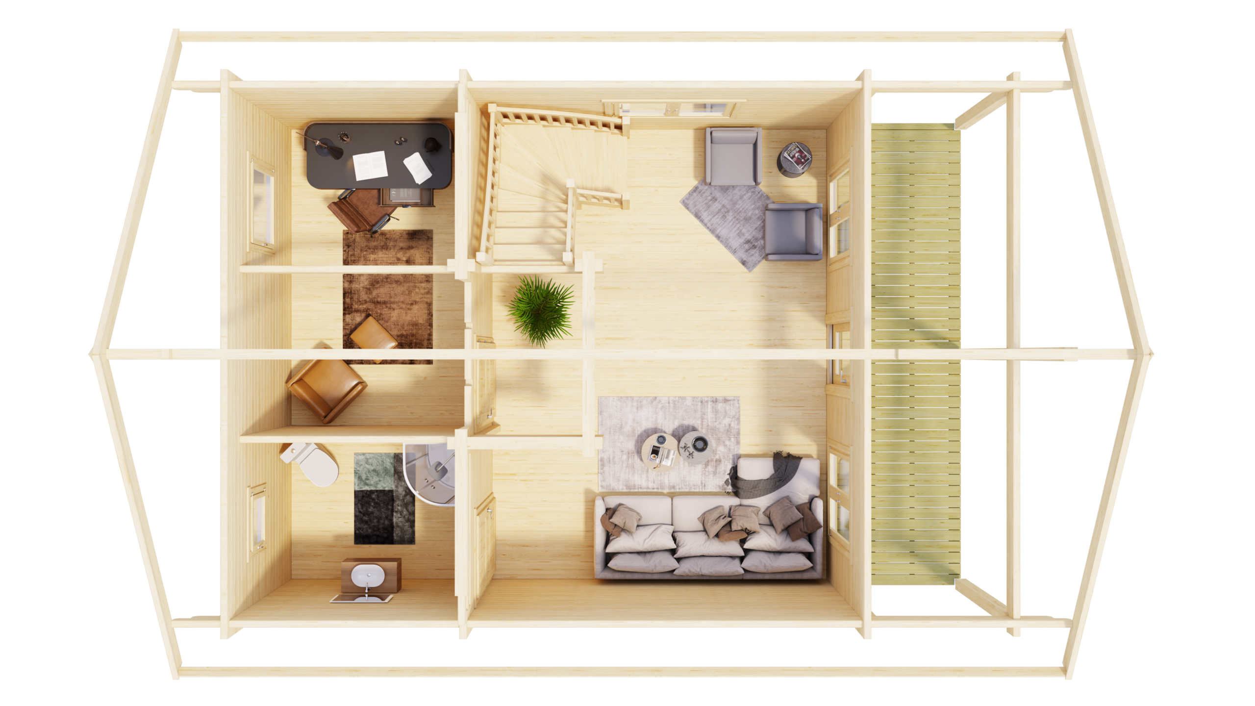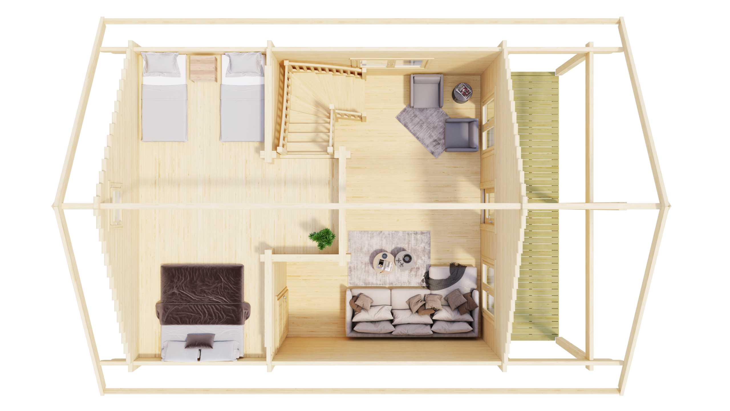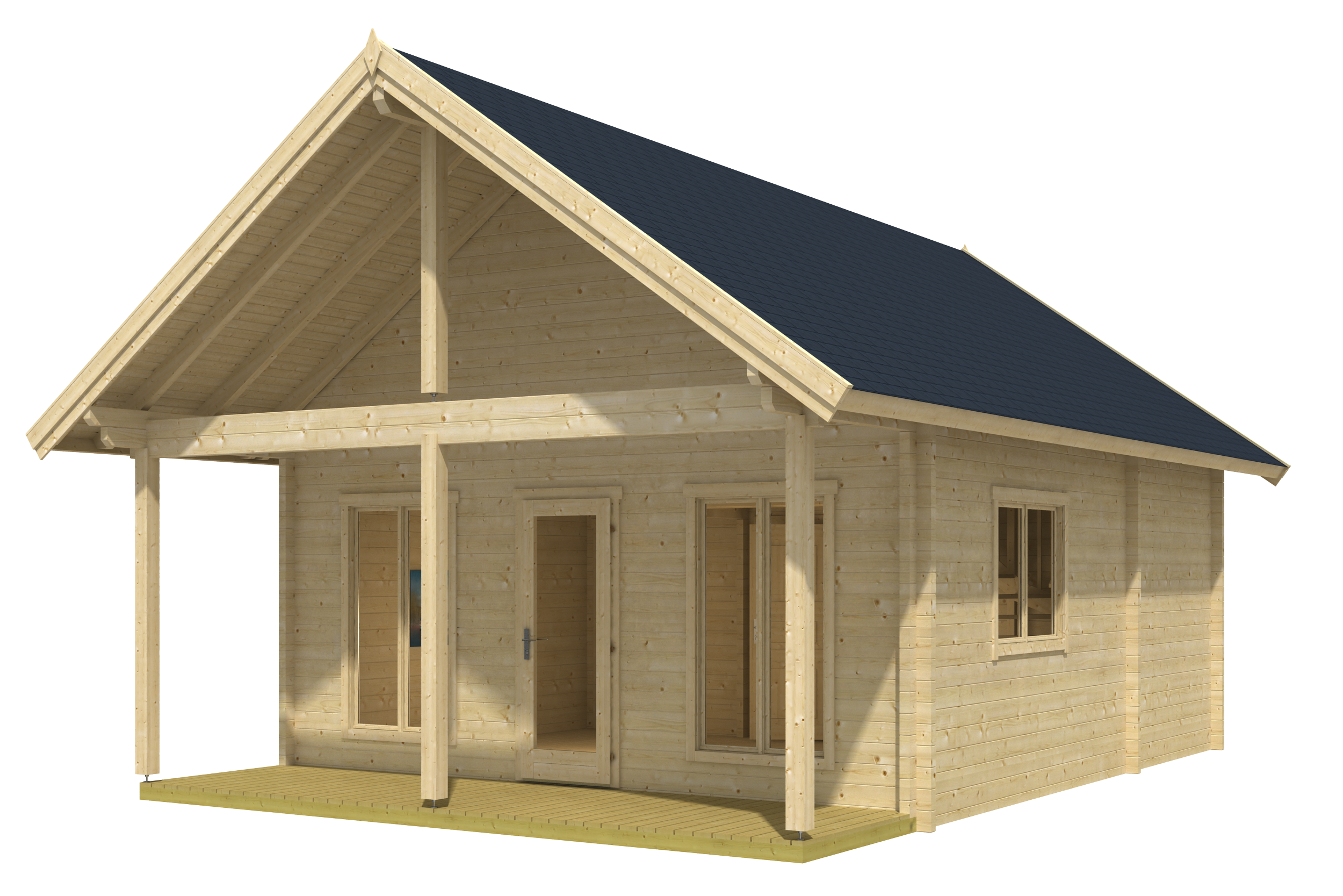 Ferienhaus mit Terrasse 70 mm, Fundamentmass 5400×6400, Naturbelassen