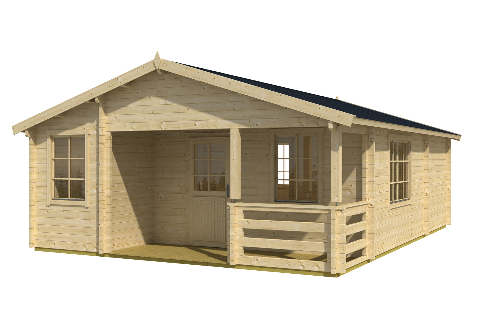 Ferienhaus mit Terrasse und Geländer 70 mm, Fundamentmass 5750×7750, Naturbelassen