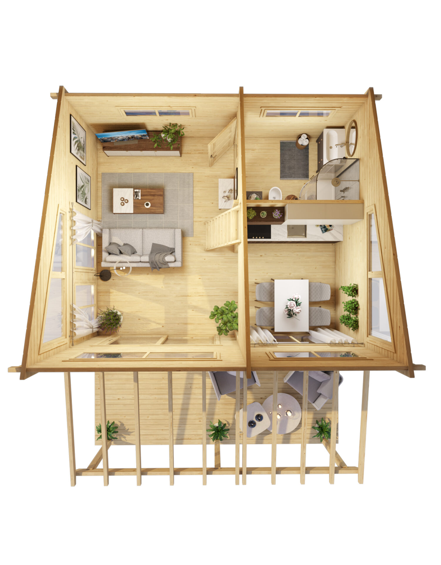 Erhalten Sie ein Dach, das Beständigkeit verspricht! Unsere verstärkte Dachkonstruktion setzt auf robuste Giebel und Dachsparren (45 mm x 135 mm oder 45 mm x 270 mm), um eine dauerhafte Stabilität zu gewährleisten und Ihr Dach vor möglichen Verformungen zu schützen.