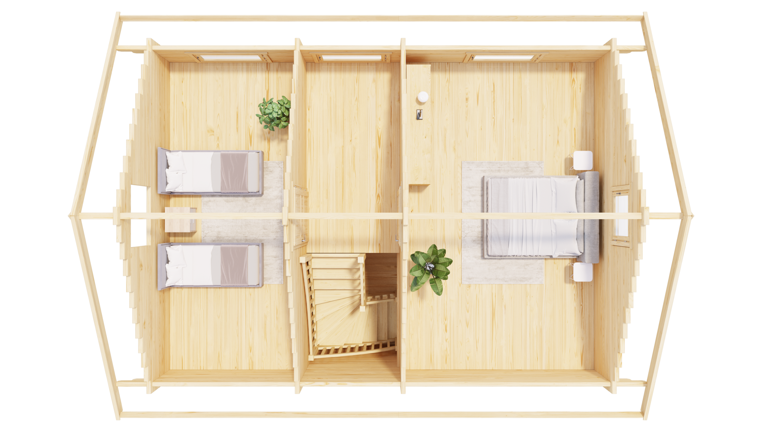 Ferienhaus mit 2 Etagen 92 mm, Fundamentmass 5400×7400, Naturbelassen