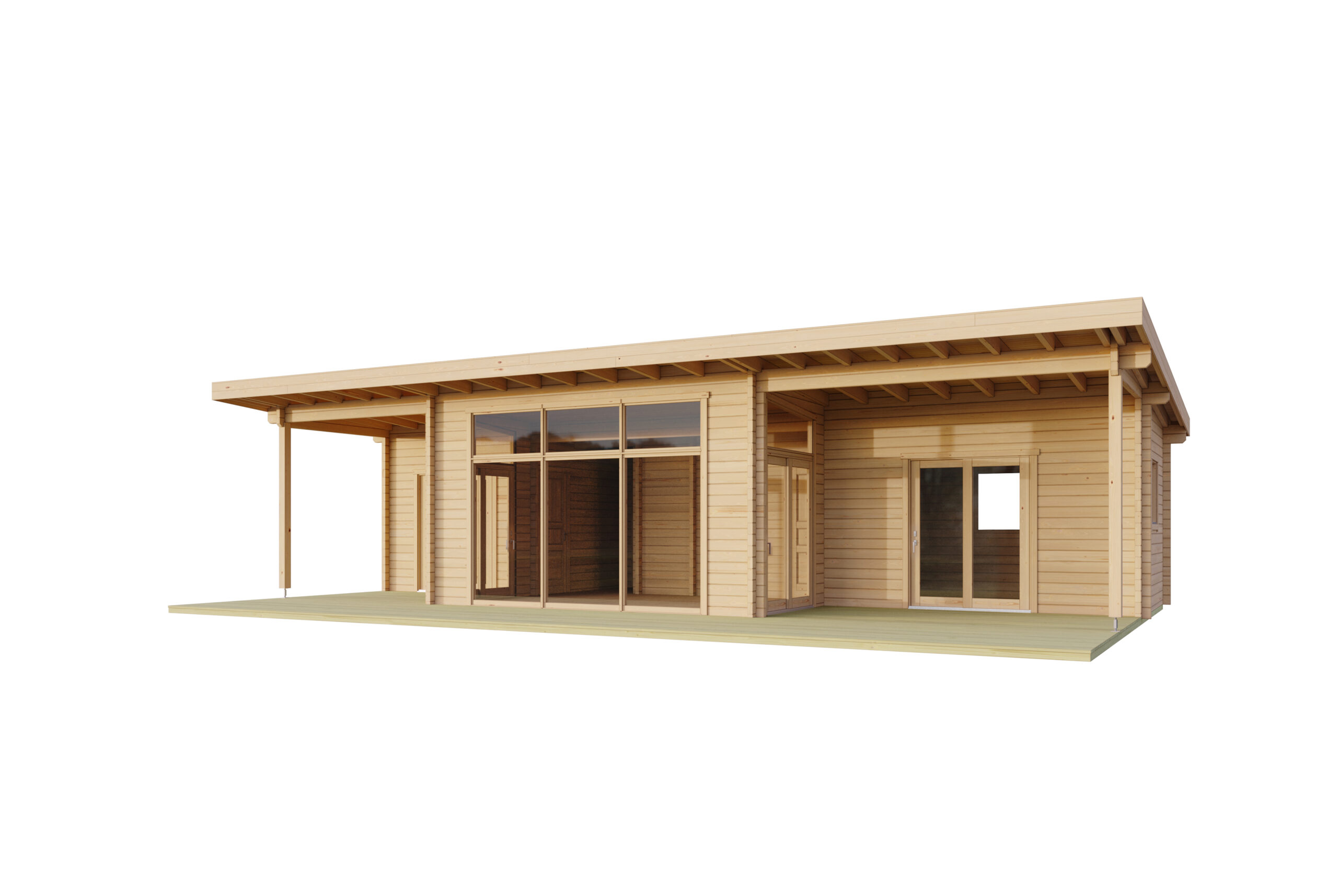 Ferienhaus mit 5 Räume und überdachten Terrasse 92 mm, Fundamentmass 5300×12000, Naturbelassen