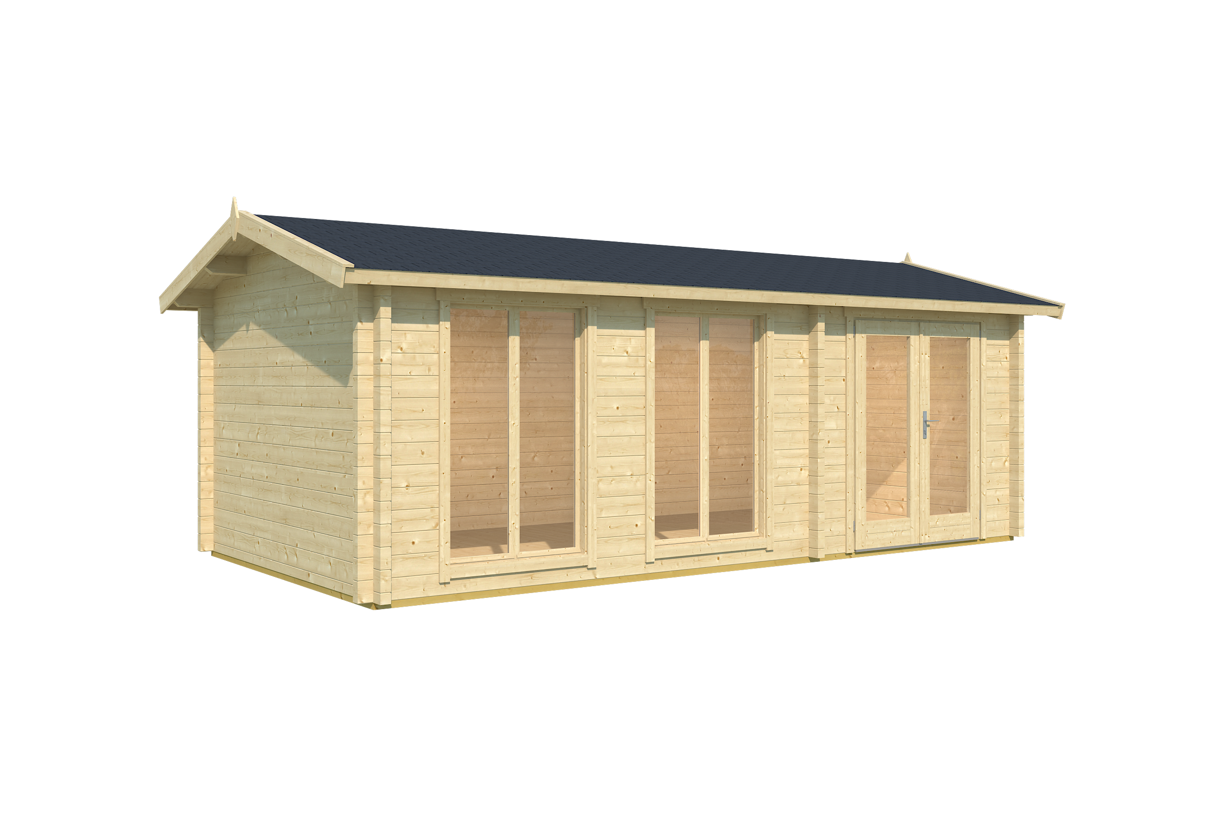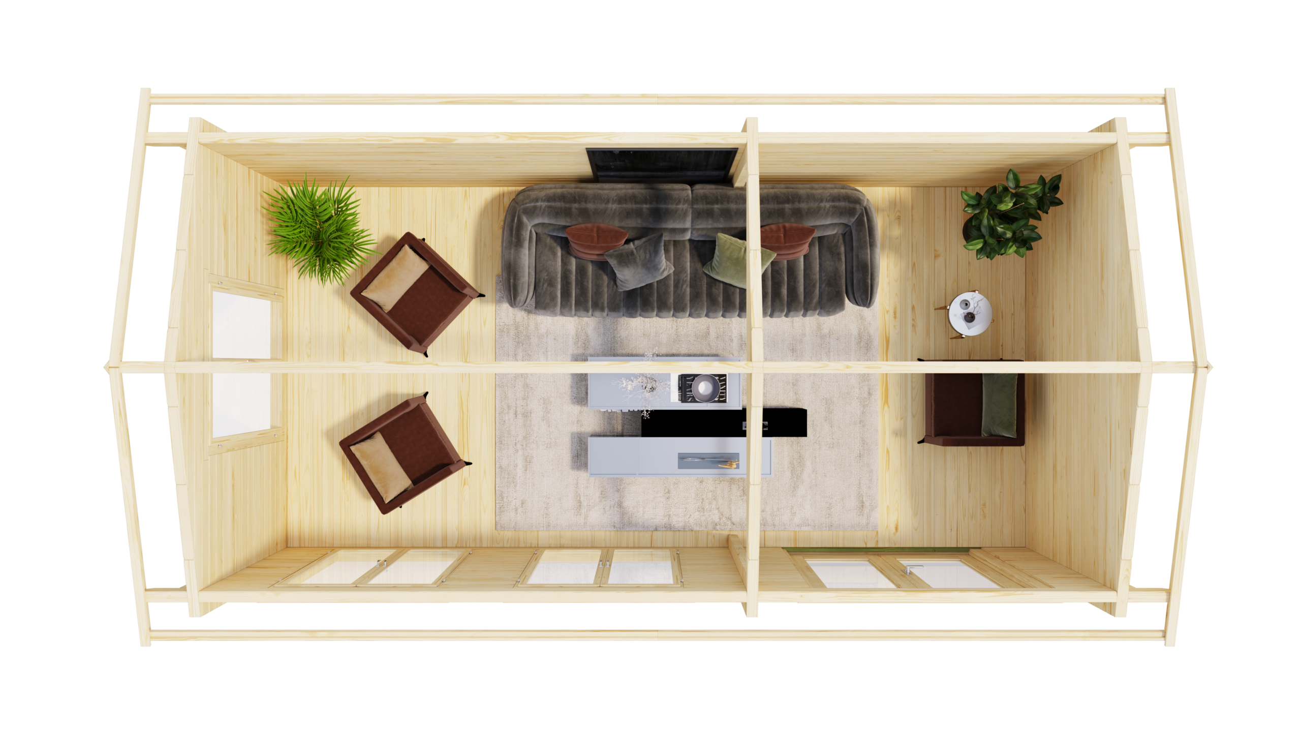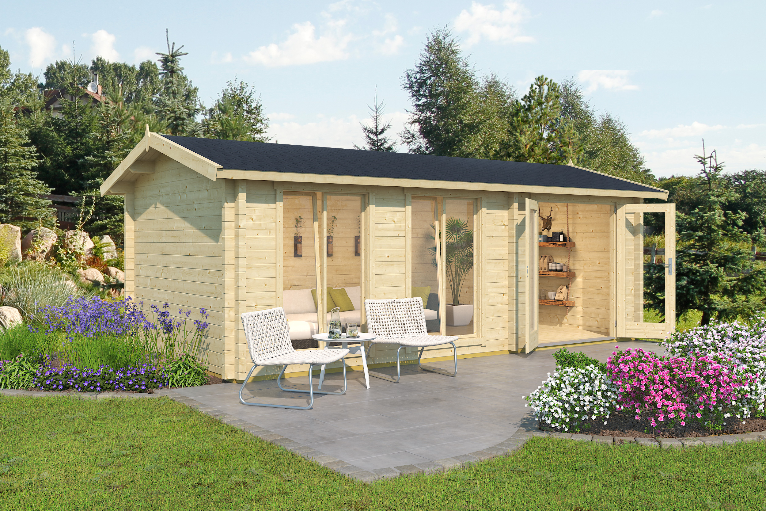 Extra helle Räume und viel Platz für Kreativität. Zwei Doppelfenster durchströmen Shetland mit viel Licht und sorgen so für eine tolle Atmosphäre. Auch der Blick nach draußen wird durch die großflächigen Fenster ein purer Genuss. Ein Gartenhaus mit 16,8 m2, in dem man sich einfach nur wohlfühlen kann.