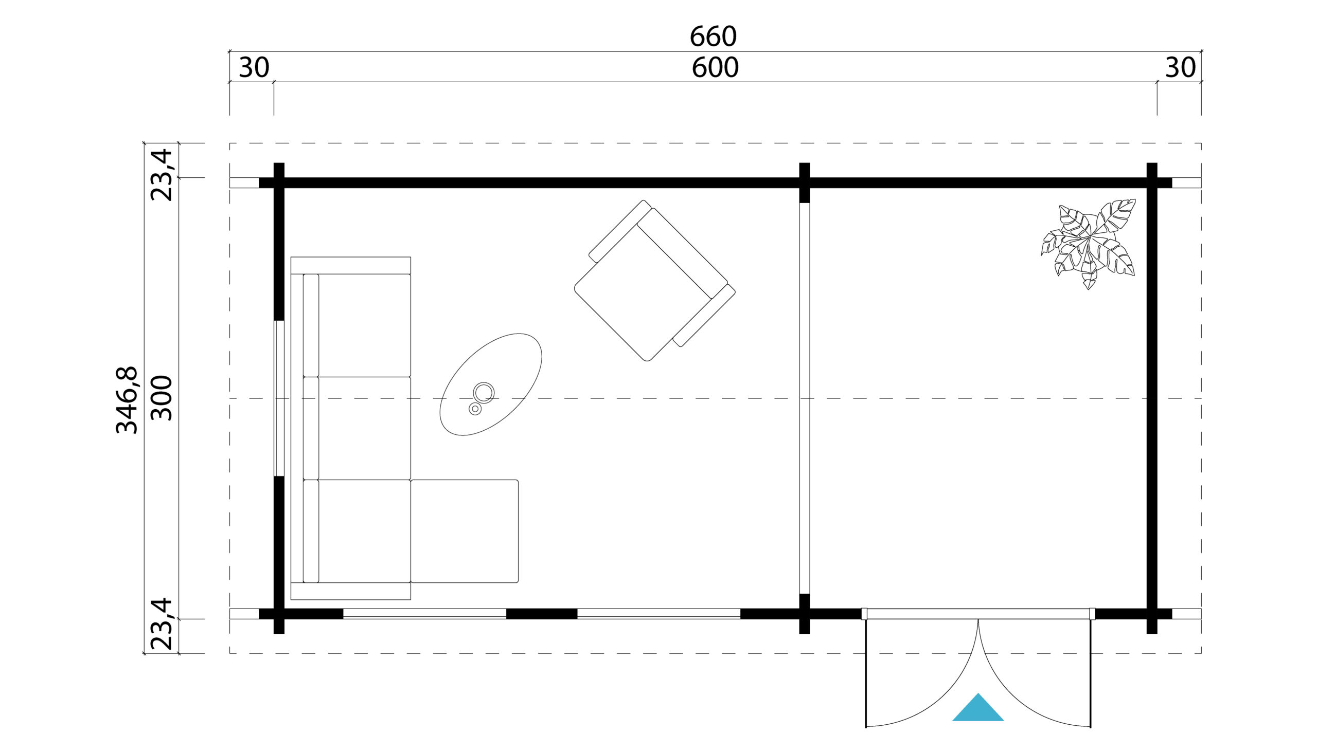 Ferienhaus 70 mm, Fundamentmass 3000×6000, Naturbelassen