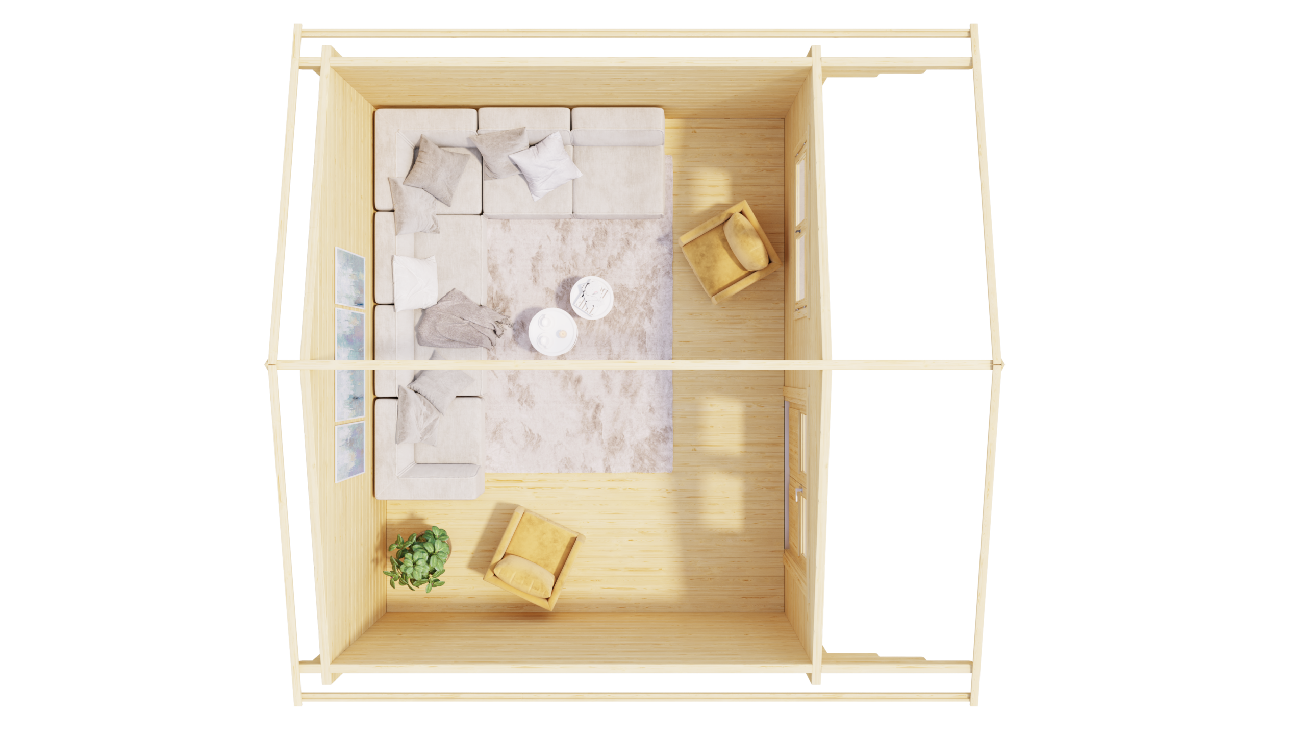 Das zeitlose Design von Spiekeroog passt perfekt in jeden Garten. Auf einer Innenfläche von 17,5 m2 kann man es sich in einer kuscheligen Sitzecke gemütlich machen, ein eigenes kleines Atelier einrichten oder Homeoffice noch schöner gestalten. Die praktische Doppeltür vergrößert den Wohnraum nach draußen und gibt das Gefühl, mitten in der Natur zu sein. Selbst bei leichtem Regen kann man unter dem großen Vordach den Sommerabend genießen.