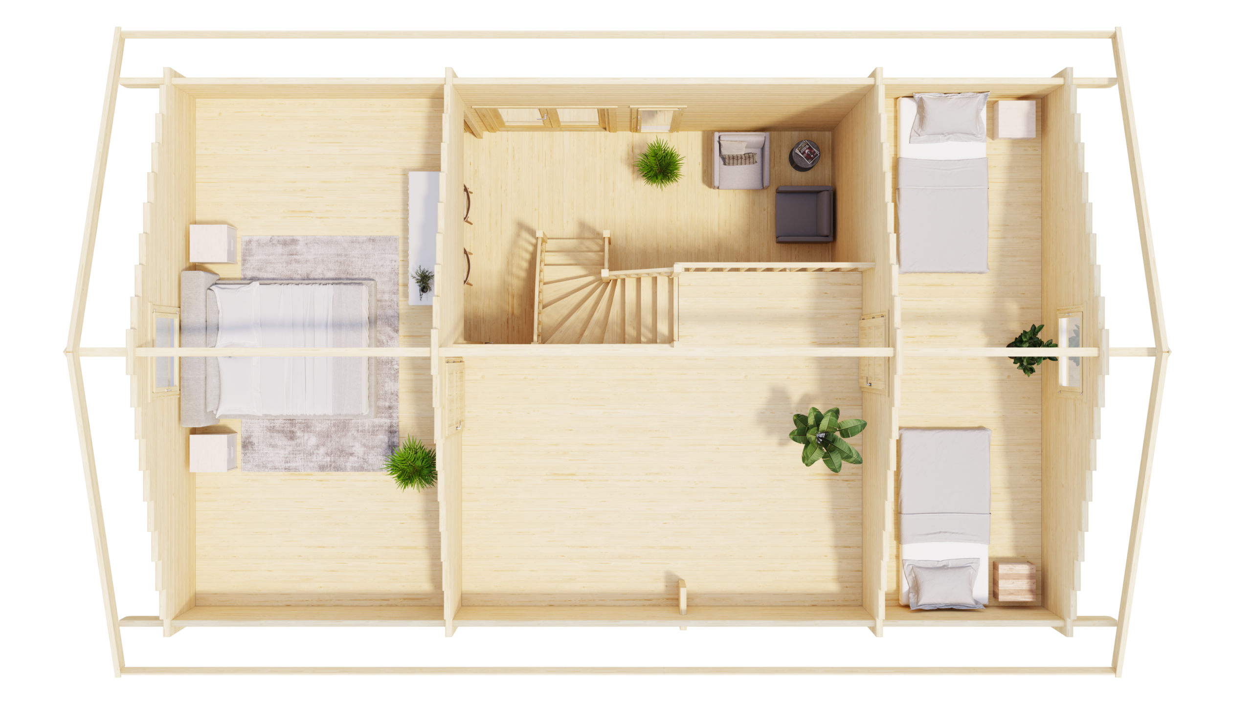 Ferienhaus mit 2 Etagen 70 mm, Fundamentmass 6000×9900, Naturbelassen