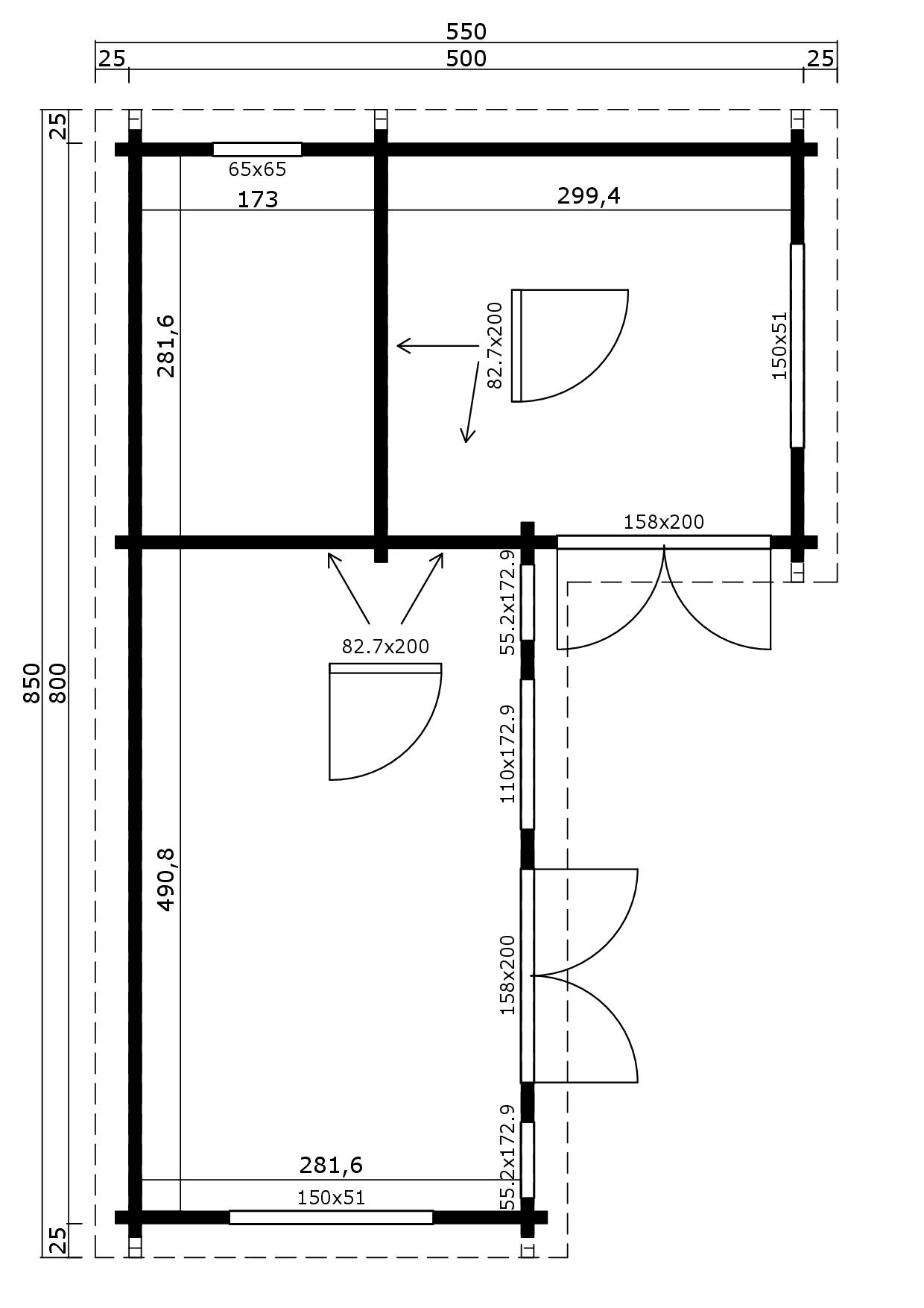 Ferienhaus mit 3 Räume 92 mm, Fundamentmass 5000×8000, Naturbelassen