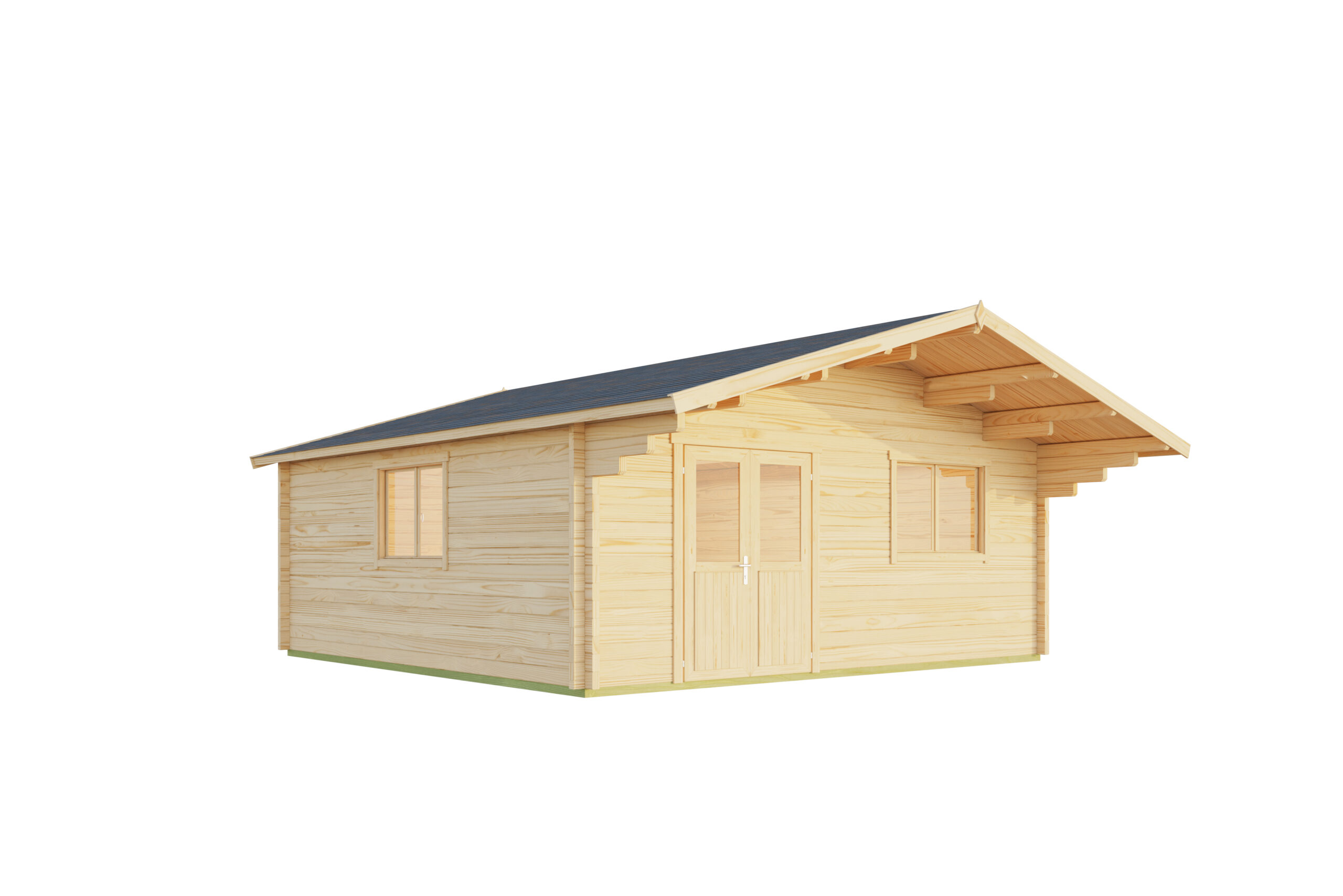 Ferienhaus mit Vordach 70 mm, Fundamentmass 5750×5750, Naturbelassen