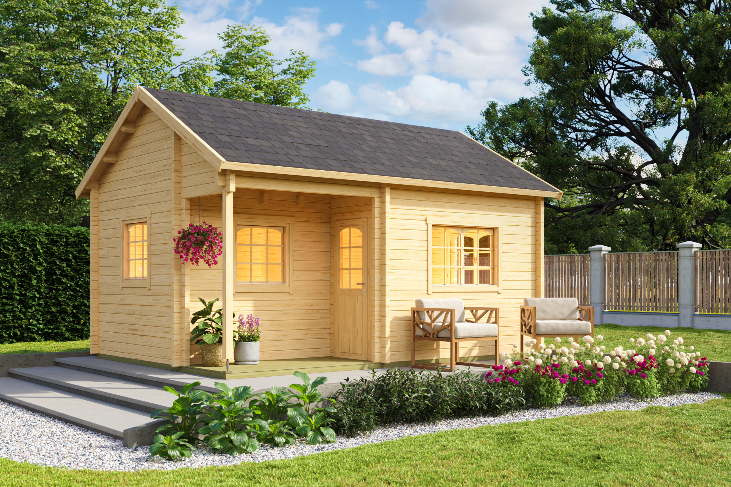 € 20209,39Ferienhaus mit überdachten Terrasse, Fundamentmass 4300×5600, Naturbelassen