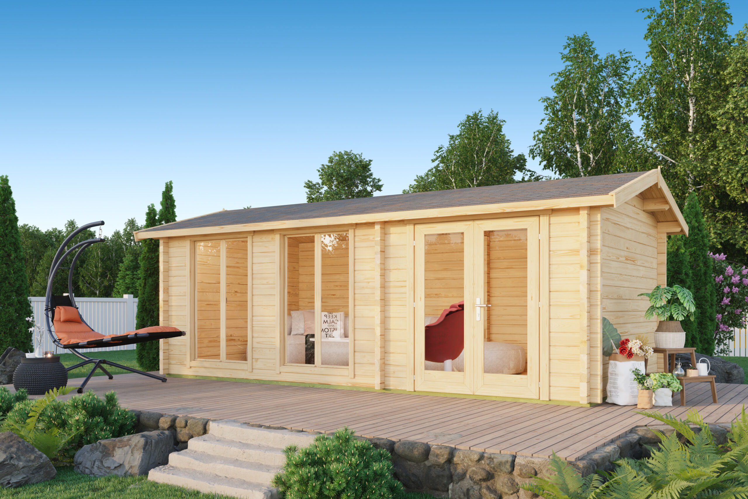 € 29936,59Ferienhaus mit Terrasse 70 mm , Fundamentmass 6600×7600, Naturbelassen