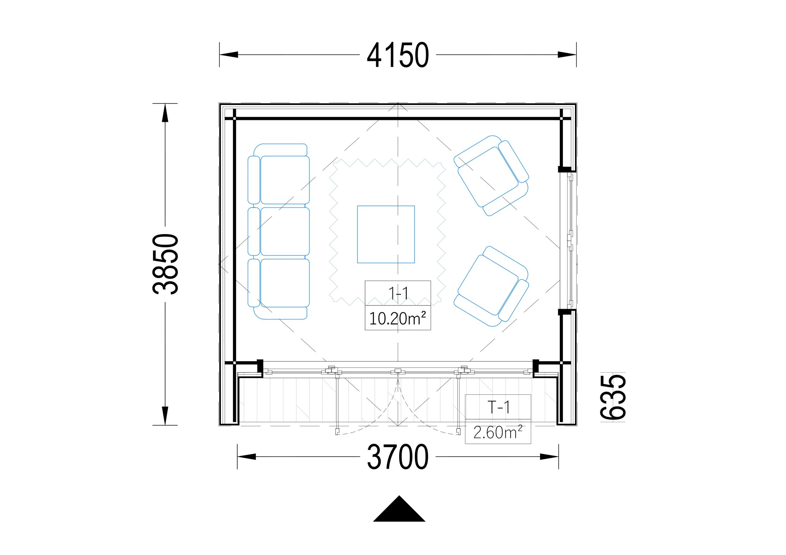 Eine der herausragenden Merkmale dieses Modells ist die großzügige 3.30 m² große Terrasse, die zum gemütlichen Verweilen im Freien einlädt. Genießen Sie sonnige Tage, laue Abende oder einen Kaffee am Morgen – die Terrasse des Premium Gartenhauses ELSA bietet Ihnen den idealen Raum, um die Natur in vollen Zügen zu genießen.