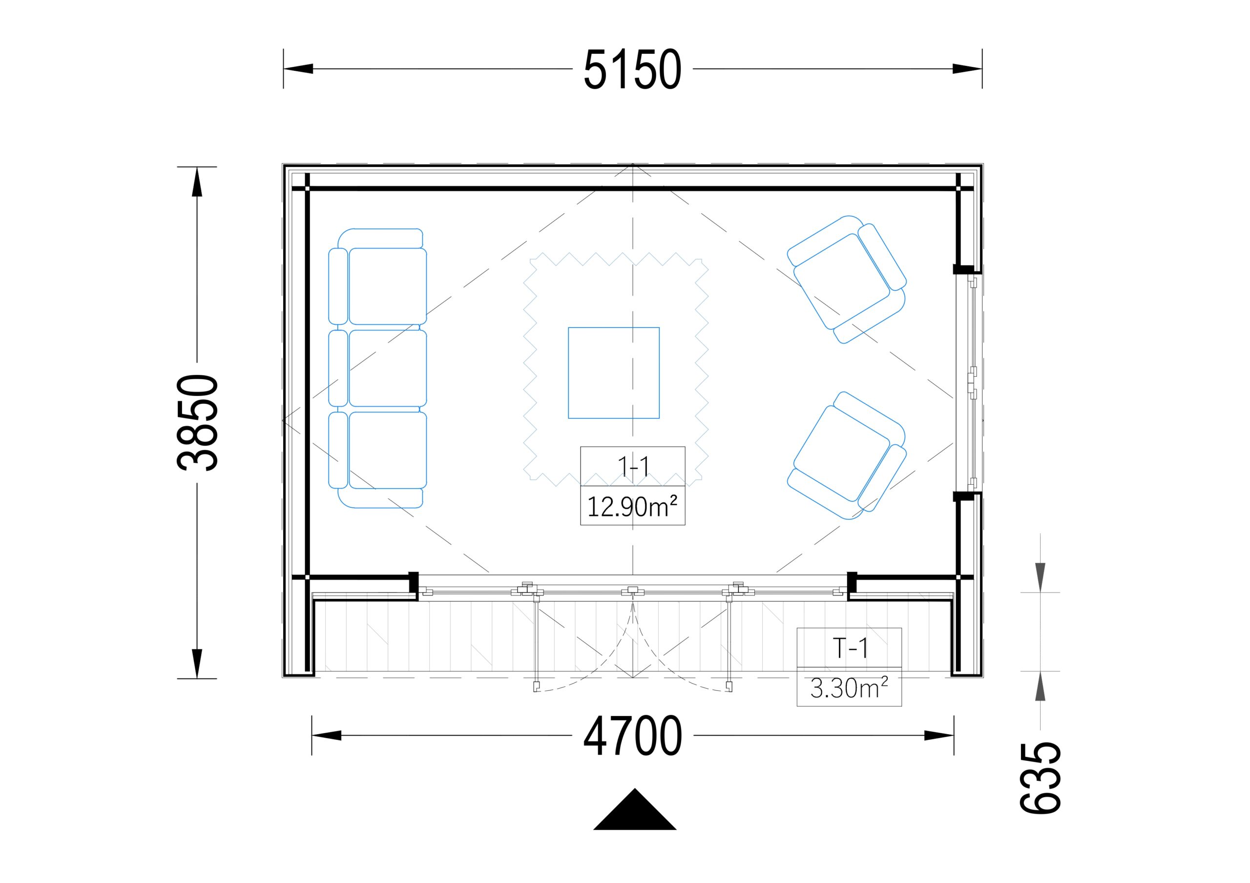 Eine der herausragenden Merkmale dieses Modells ist die großzügige 3.30 m² große Terrasse, die zum gemütlichen Verweilen im Freien einlädt. Genießen Sie sonnige Tage, laue Abende oder einen Kaffee am Morgen – die Terrasse des Premium Gartenhauses ELSA bietet Ihnen den idealen Raum, um die Natur in vollen Zügen zu genießen.