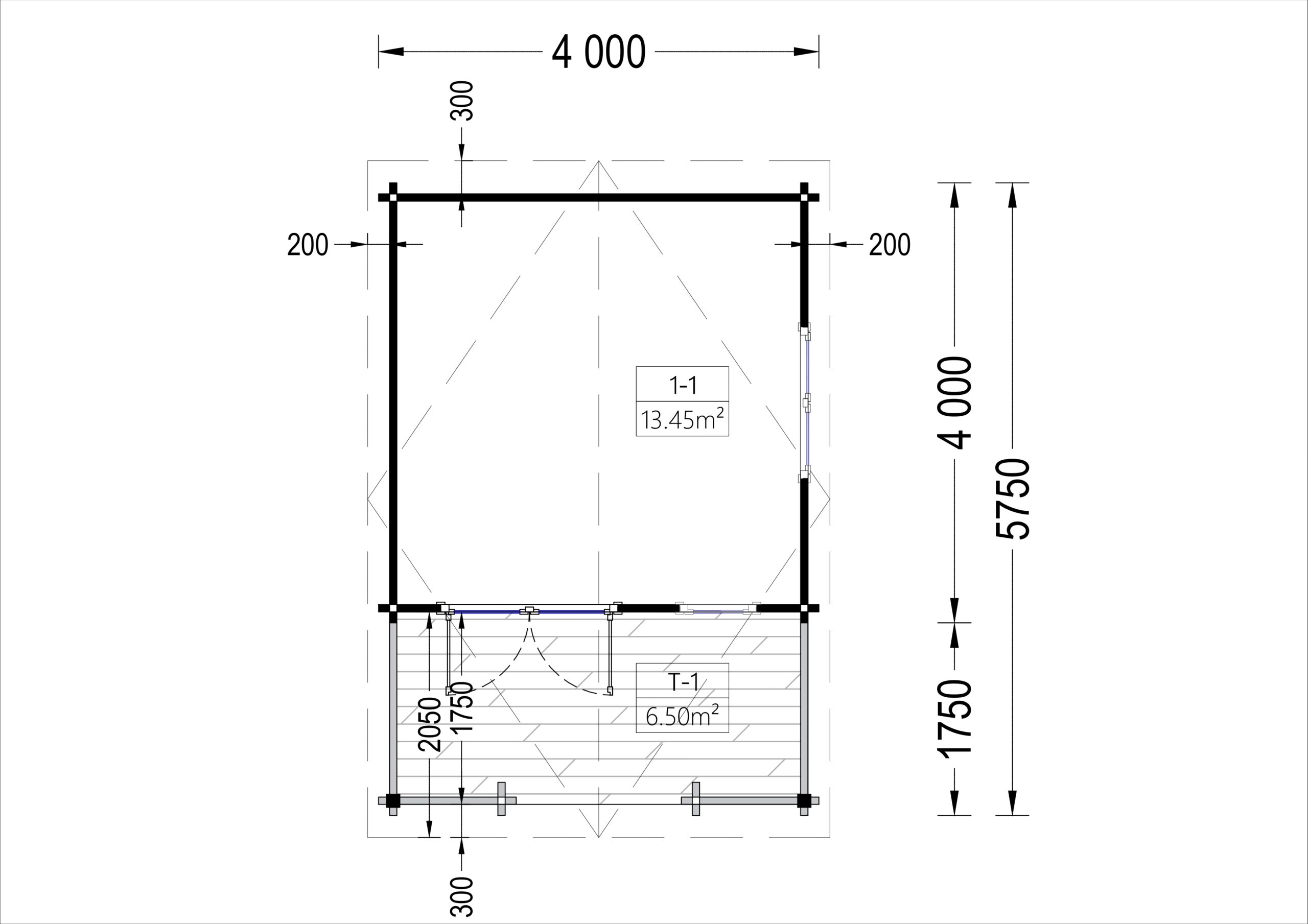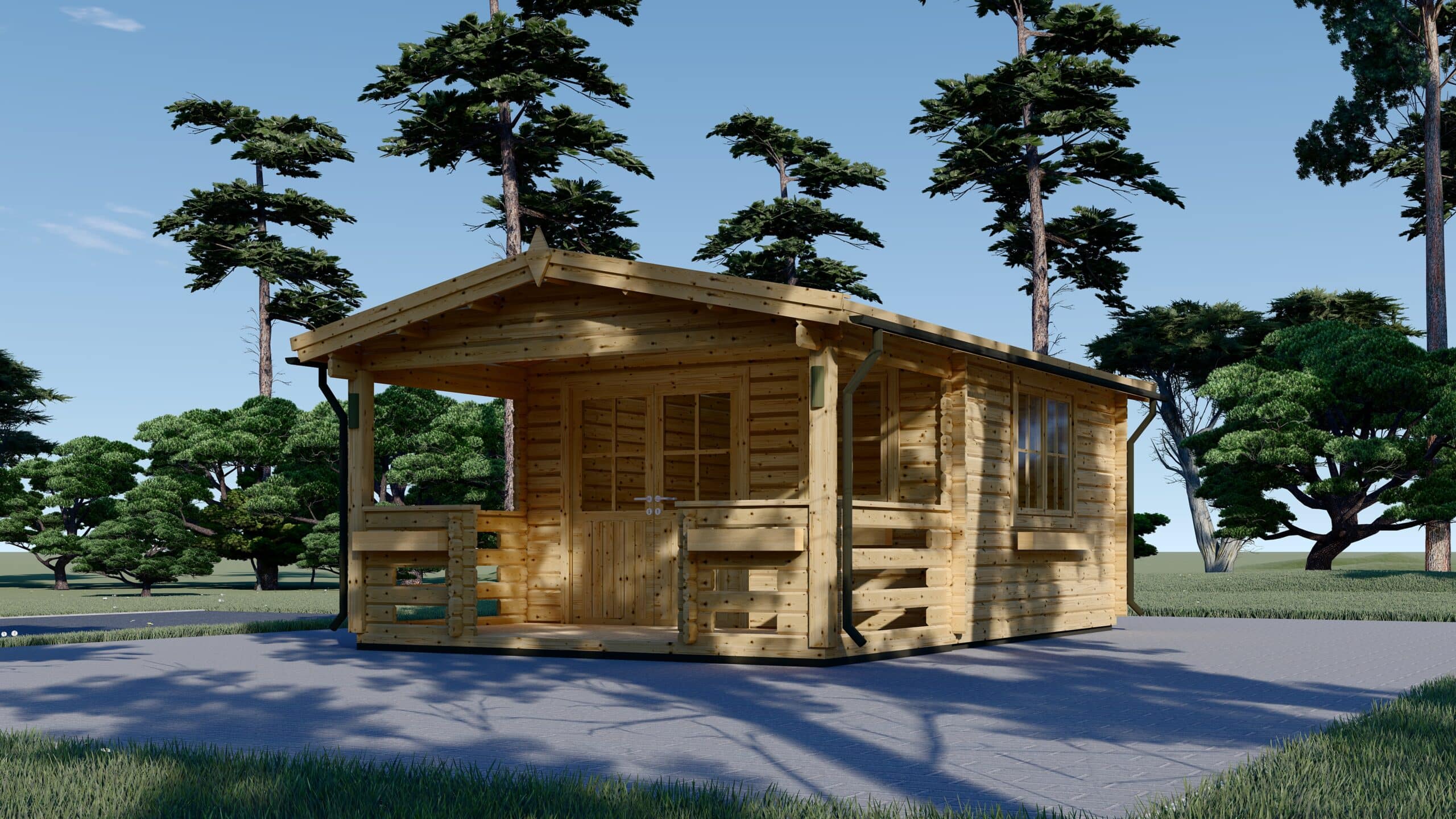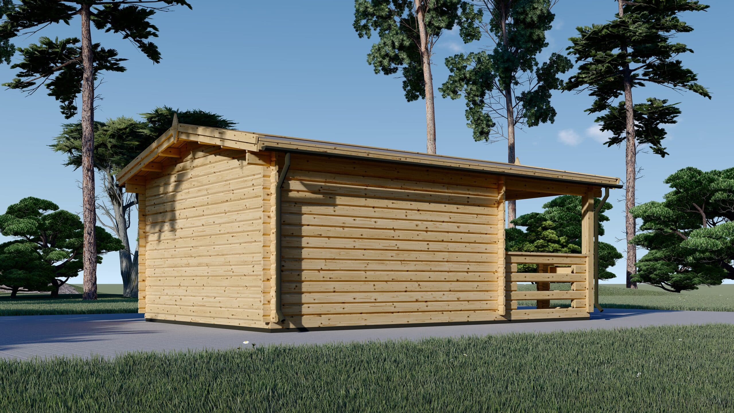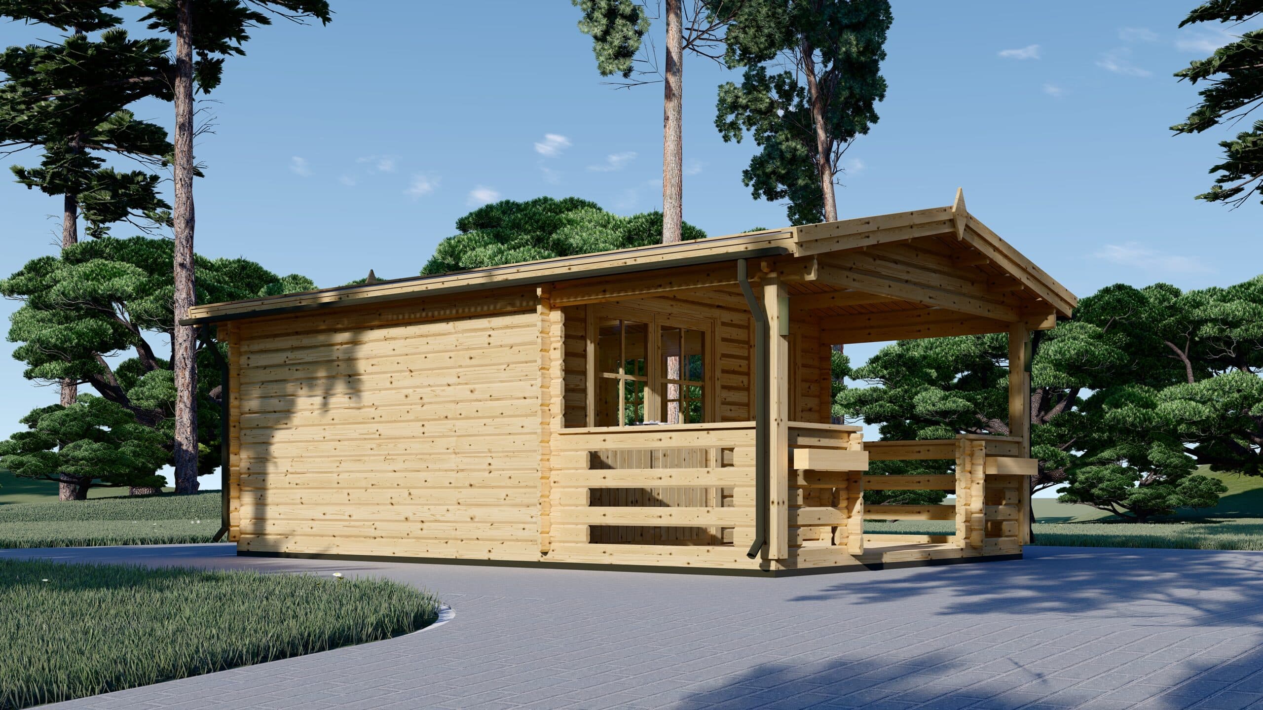 Gartenhaus aus Holz SABINE, 4×5.75 m, 16 m² + 7 m² Terrasse