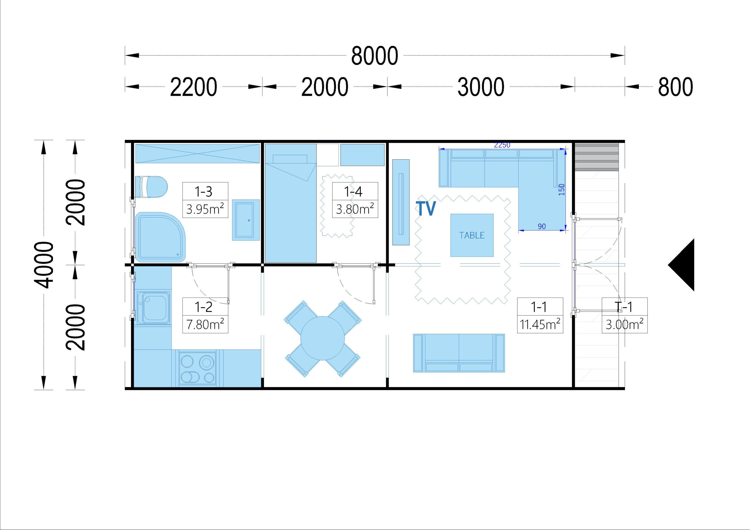 19 m² Aufenthaltsbereich – Platz für ein gemütliches Wohnzimmer und eine voll ausgestattete Küche