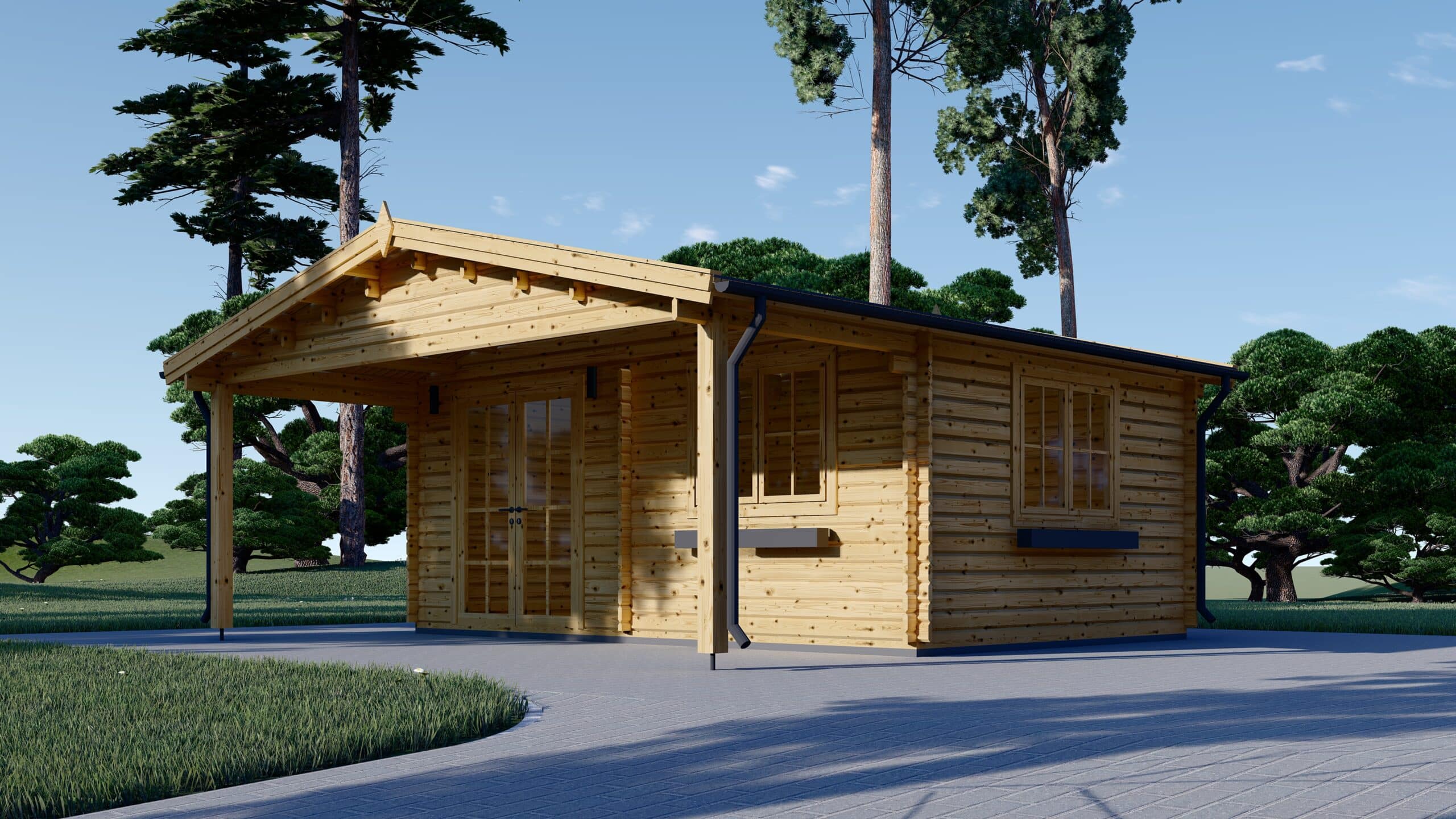 Das Premium Gartenhaus „Camila“ vereint Funktionalität und Ästhetik in einem. Nutzen Sie die überdachte Terrasse für gesellige Zusammenkünfte, entspannen Sie im lichtdurchfluteten Innenraum, und lassen Sie den eleganten Dachüberstand Ihren Garten bereichern. „Camila“ – ein Ort des Komforts und des stilvollen Rückzugs in Ihrem eigenen Garten.
