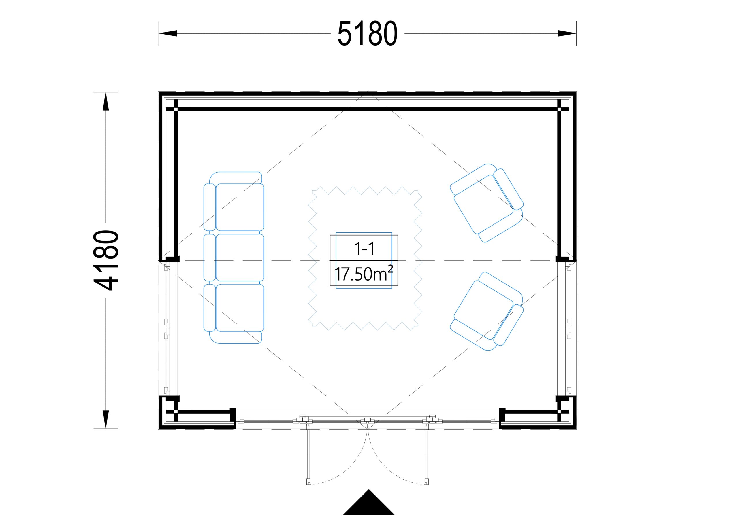 Gartenhaus ANTON (34mm + Holzverschalung ), 5x5m, 25m²