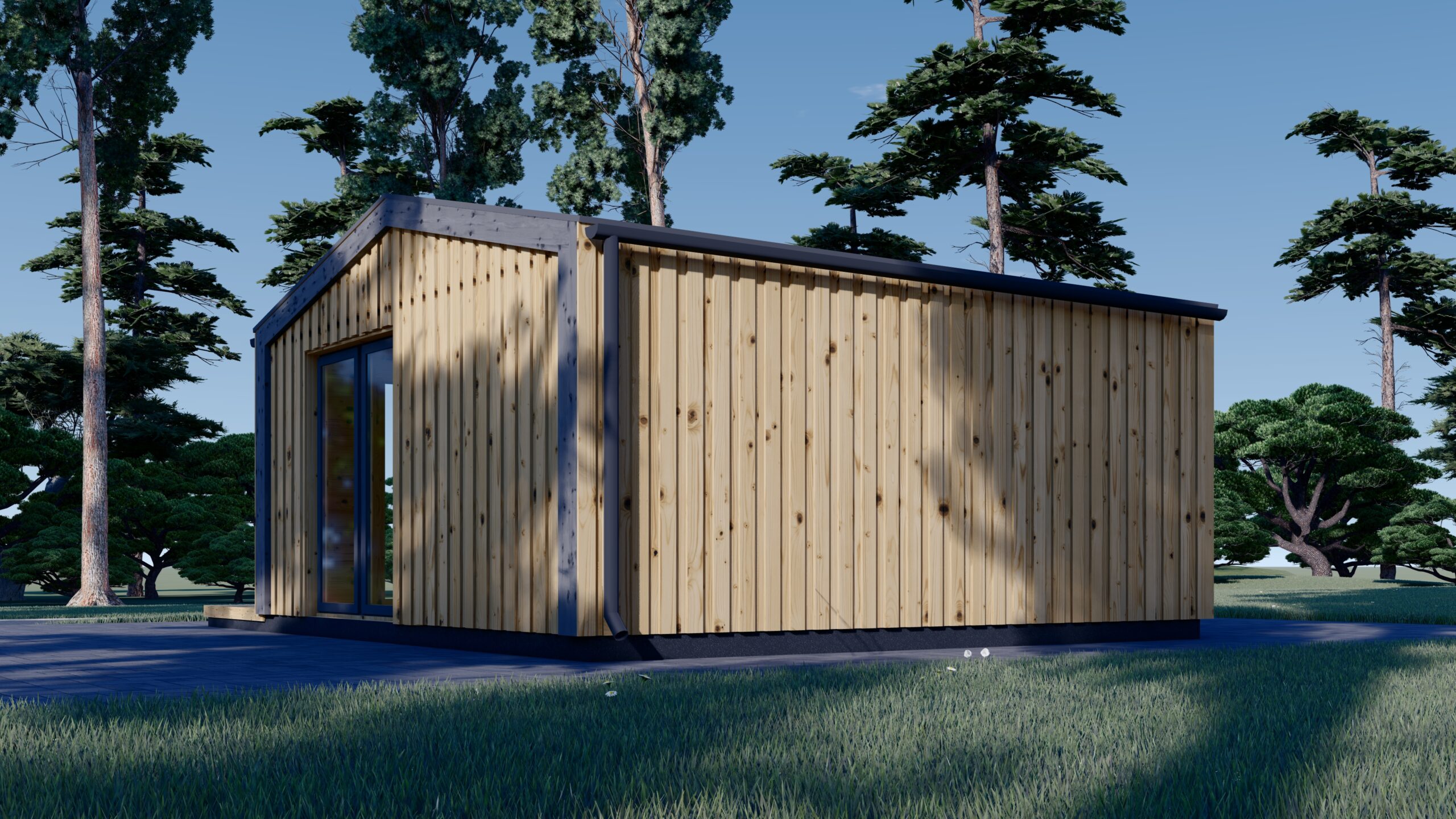 ERMONES präsentiert einen exzellenten Architekturstil, der das Beste aus beiden Welten vereint: modernen Minimalismus und traditionelle Formen. Die 34 mm starke Holzverschalung sorgt für eine zeitlose Eleganz, während klare Linien und moderne Details dem Gartenhaus einen Hauch von Exklusivität verleihen.