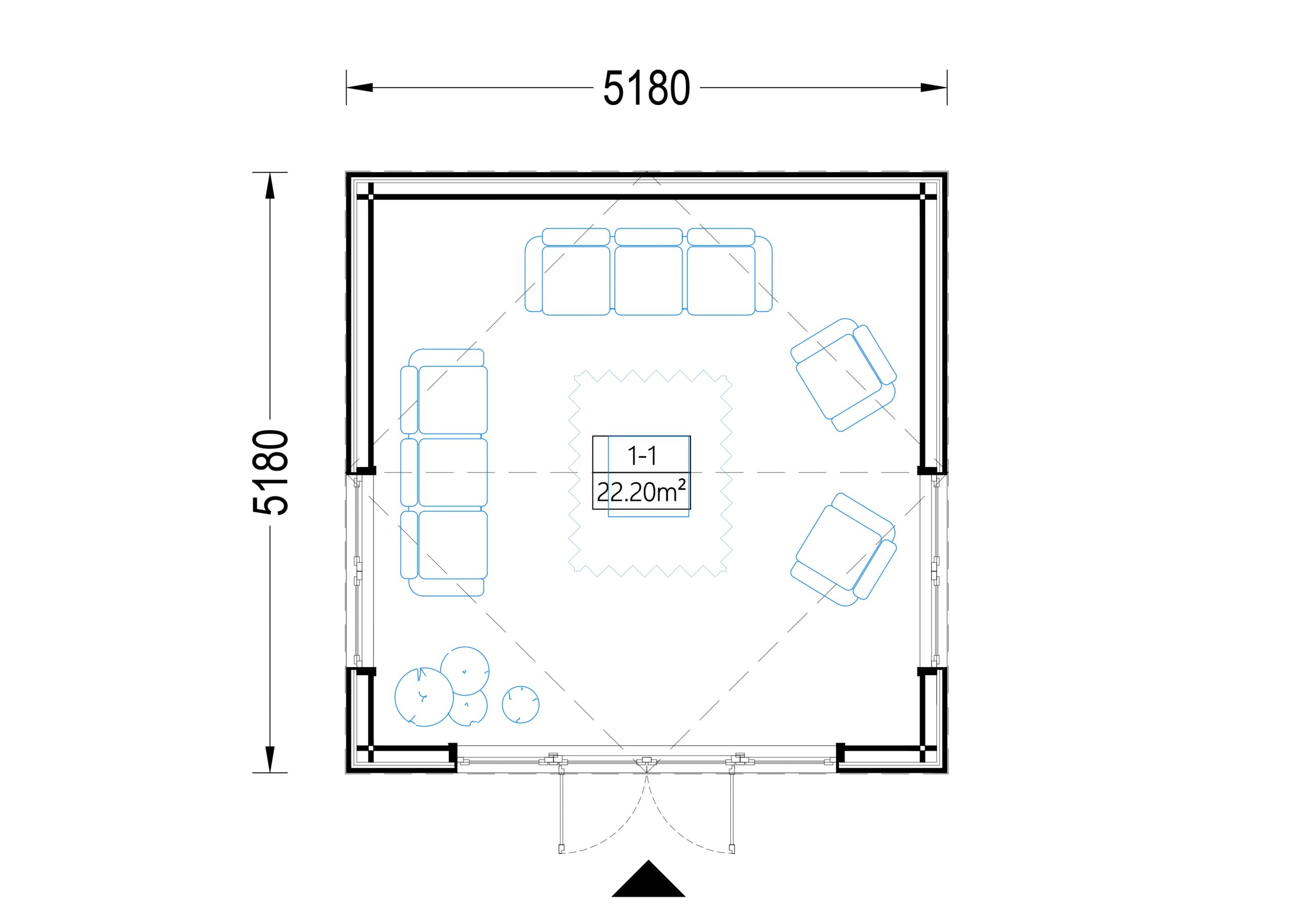 Gartenhaus ERMONES (34mm + Holzverschalung), 5x5m, 25m²