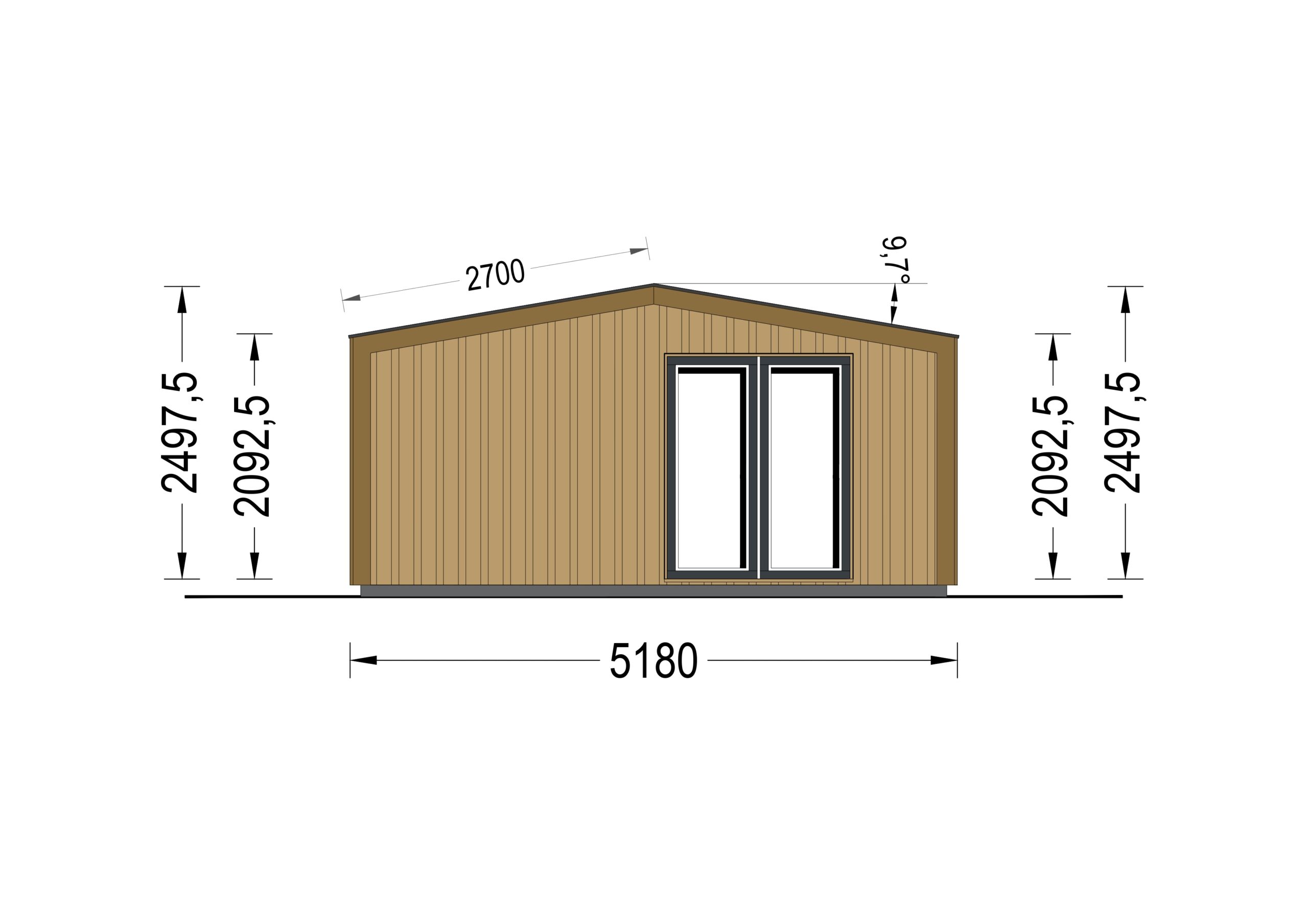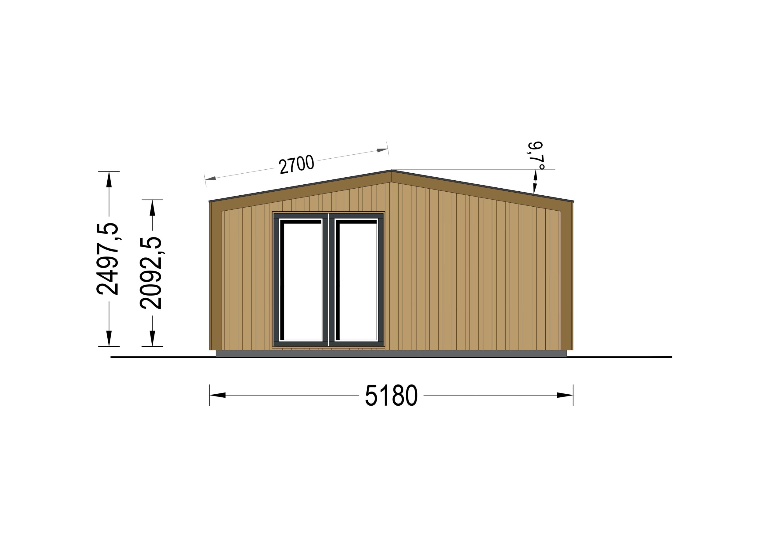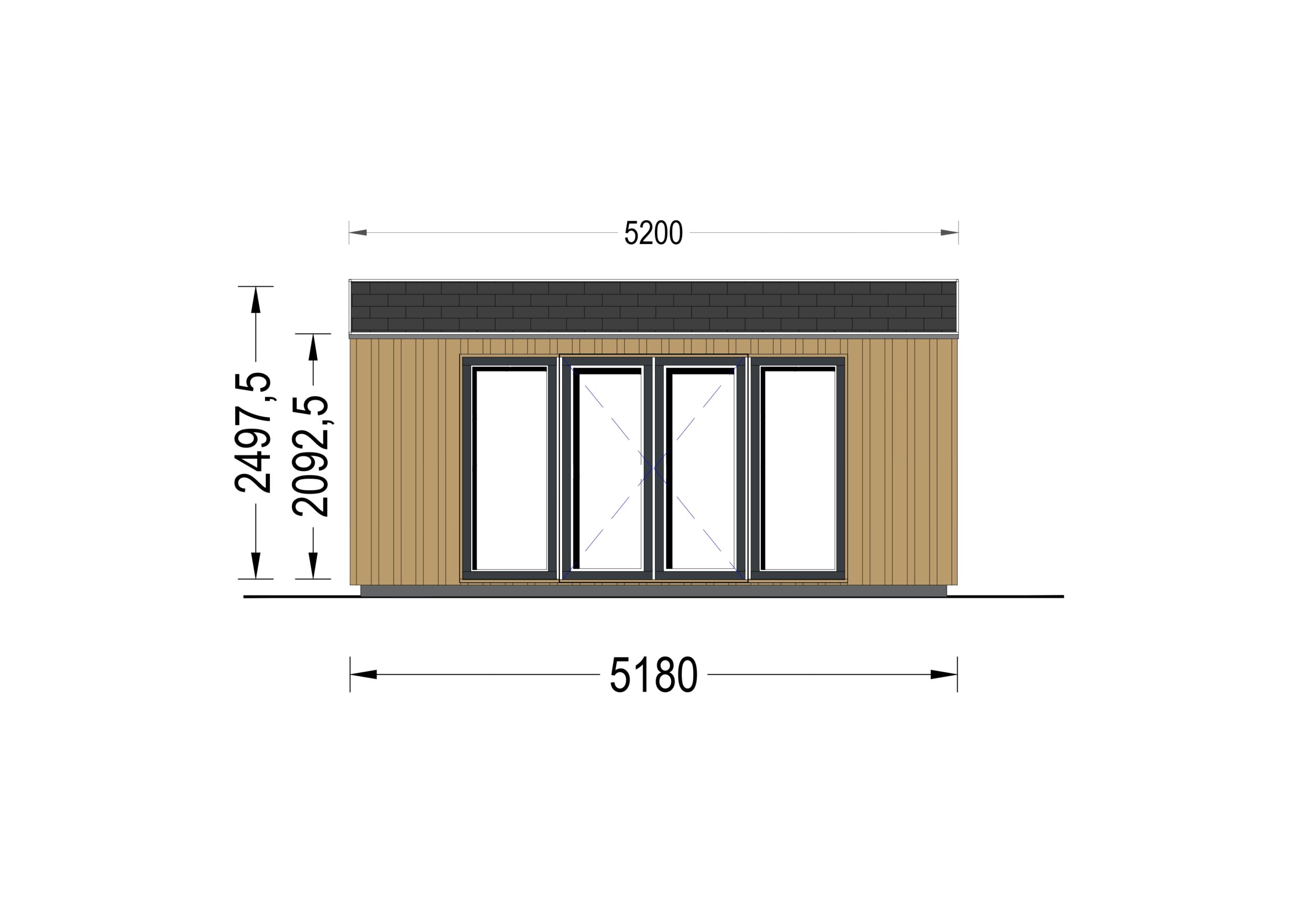 Gartenhaus EMIL (34mm + Holzverschalung ), 5x4m, 20m²