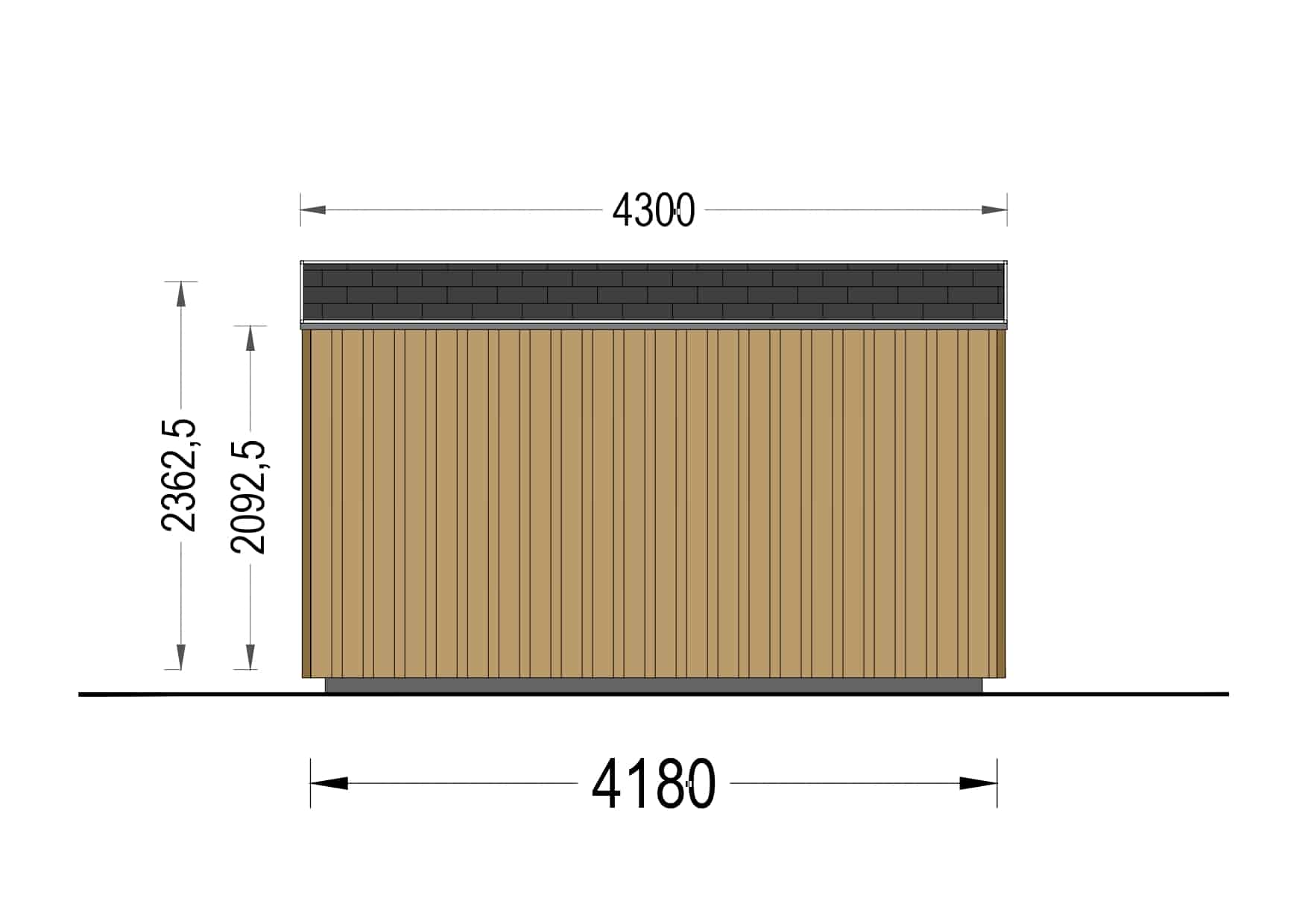Gartenhaus ANTON (34mm + Holzverschalung ), 8x3m, 15m²