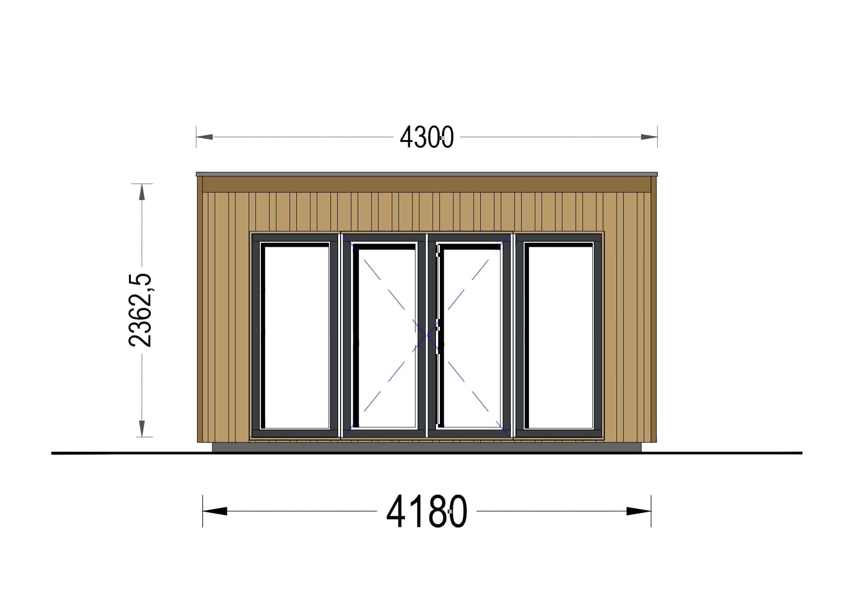 Gartenhaus ANTON (34mm + Holzverschalung ), 5x5m, 25m²