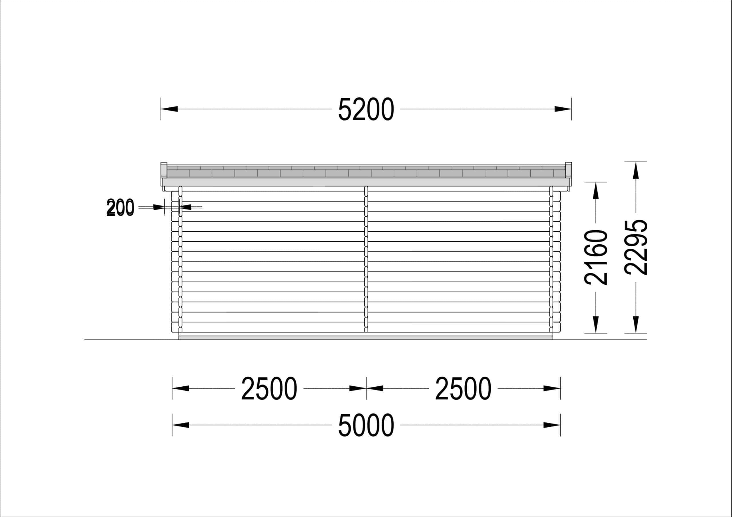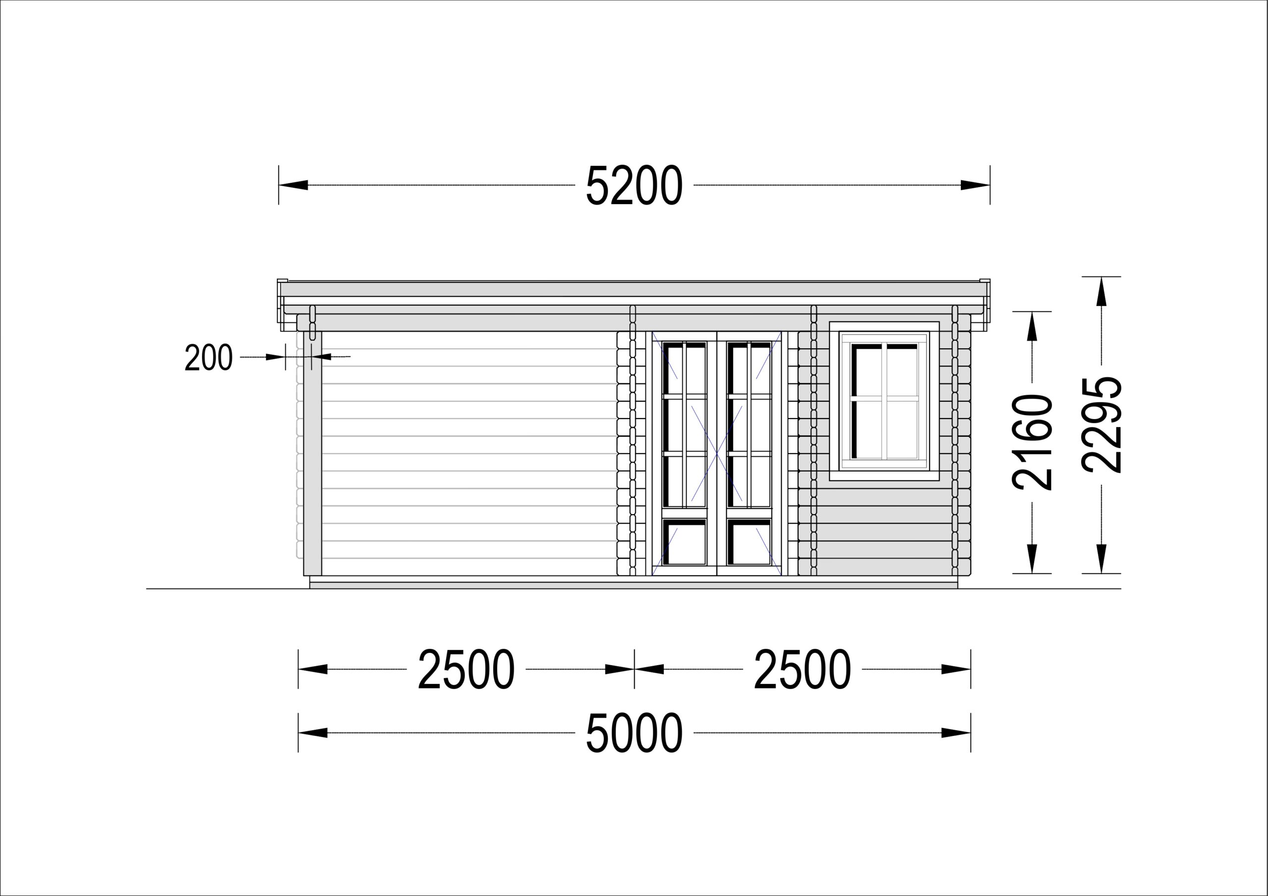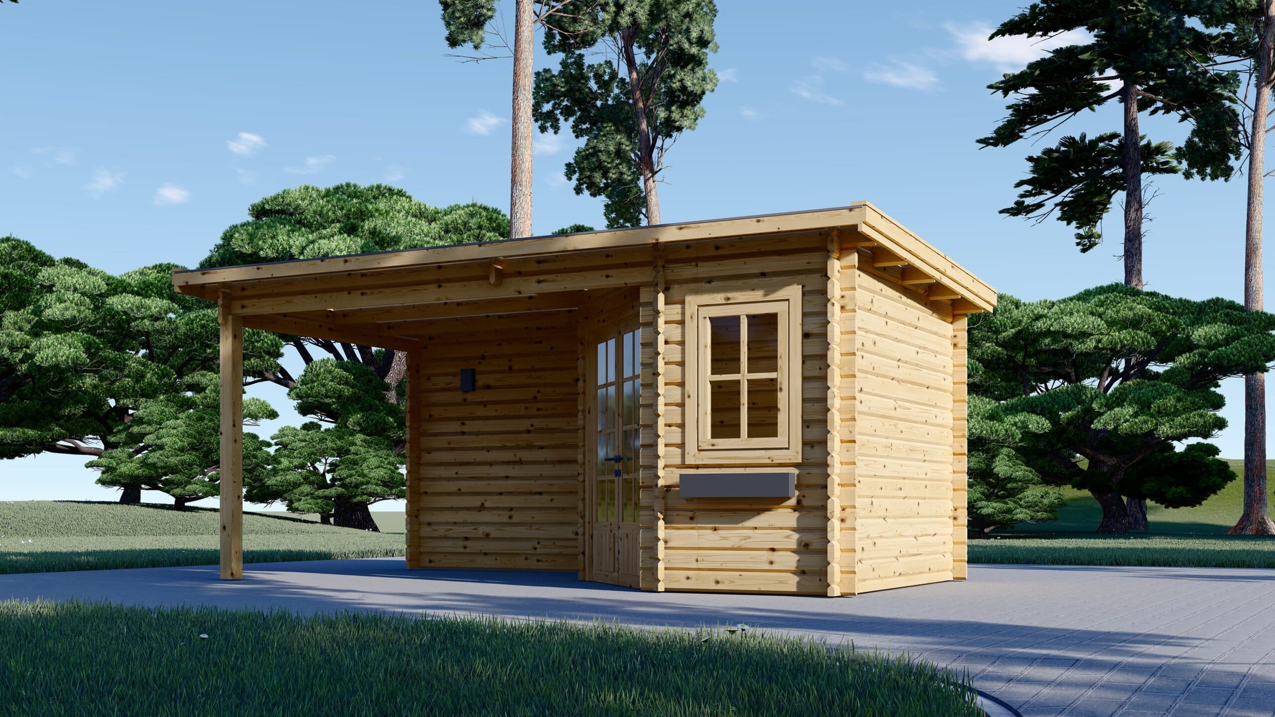 Gartenhaus mit Terrasse KATI (44 mm), 5×3 m, 7.5 m² + 7.5 m²