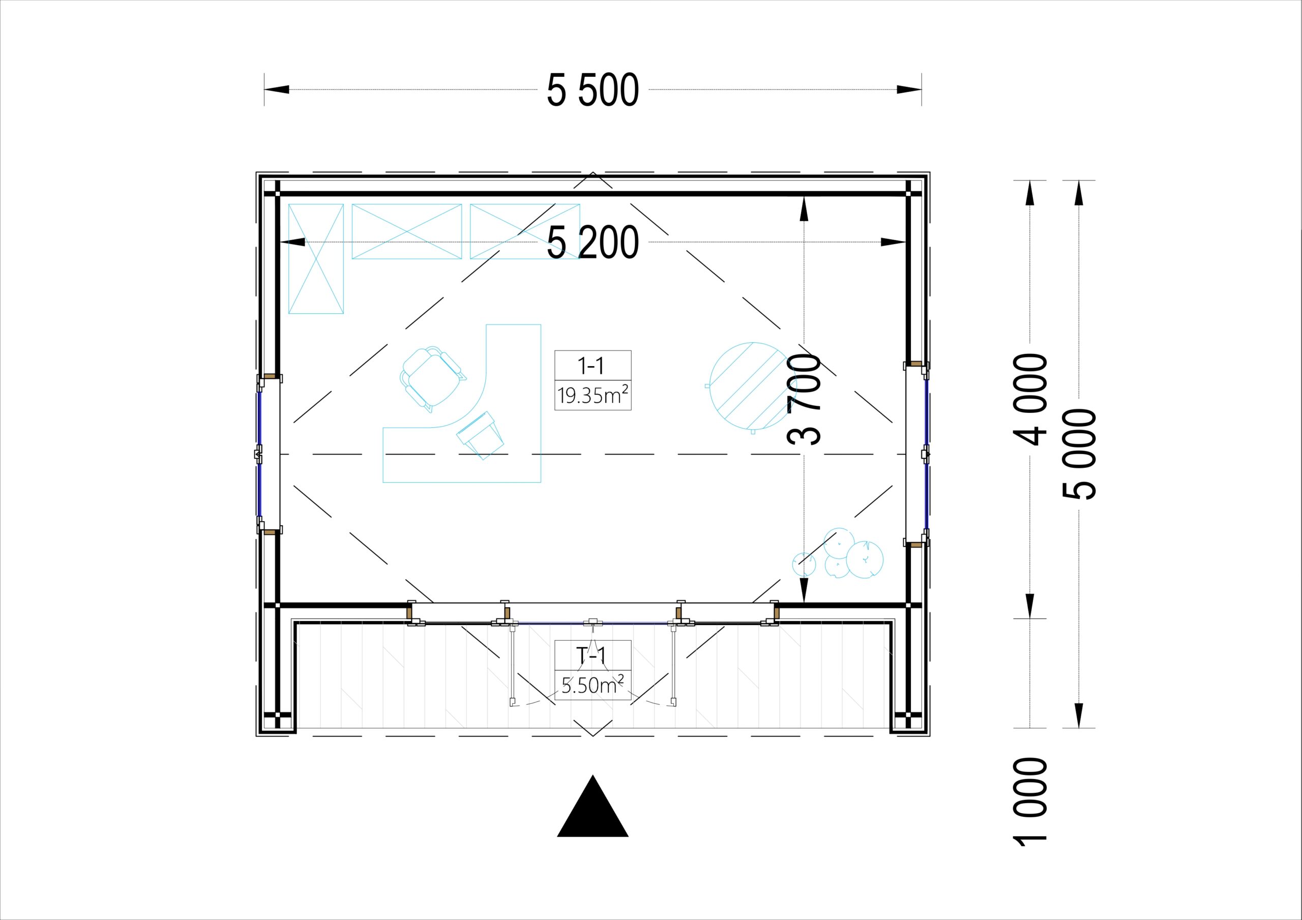 Integrierte überdachte Terrasse: TINA verfügt über eine integrierte überdachte Terrasse, die zum gemütlichen Entspannen und Träumen während Ihrer Kaffeepausen einlädt. Diese Terrasse erweitert den Nutzungsbereich des Gartenhauses und schafft einen nahtlosen Übergang zwischen Innen- und Außenbereich. Geräumiger Innenraum: