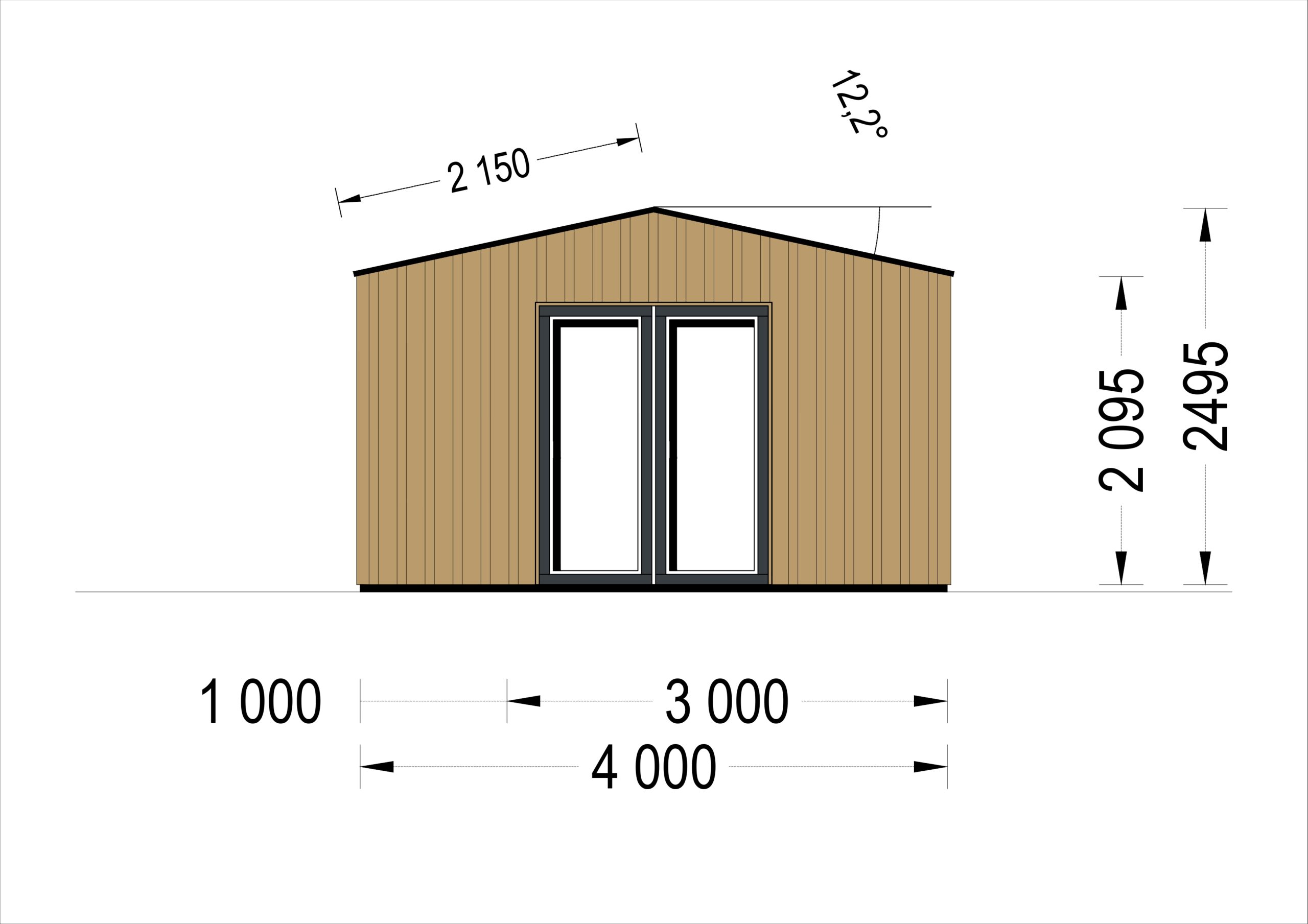 Gartenhaus ANTONIA (34mm + Holzverschalung ), 4x3m, 12m²