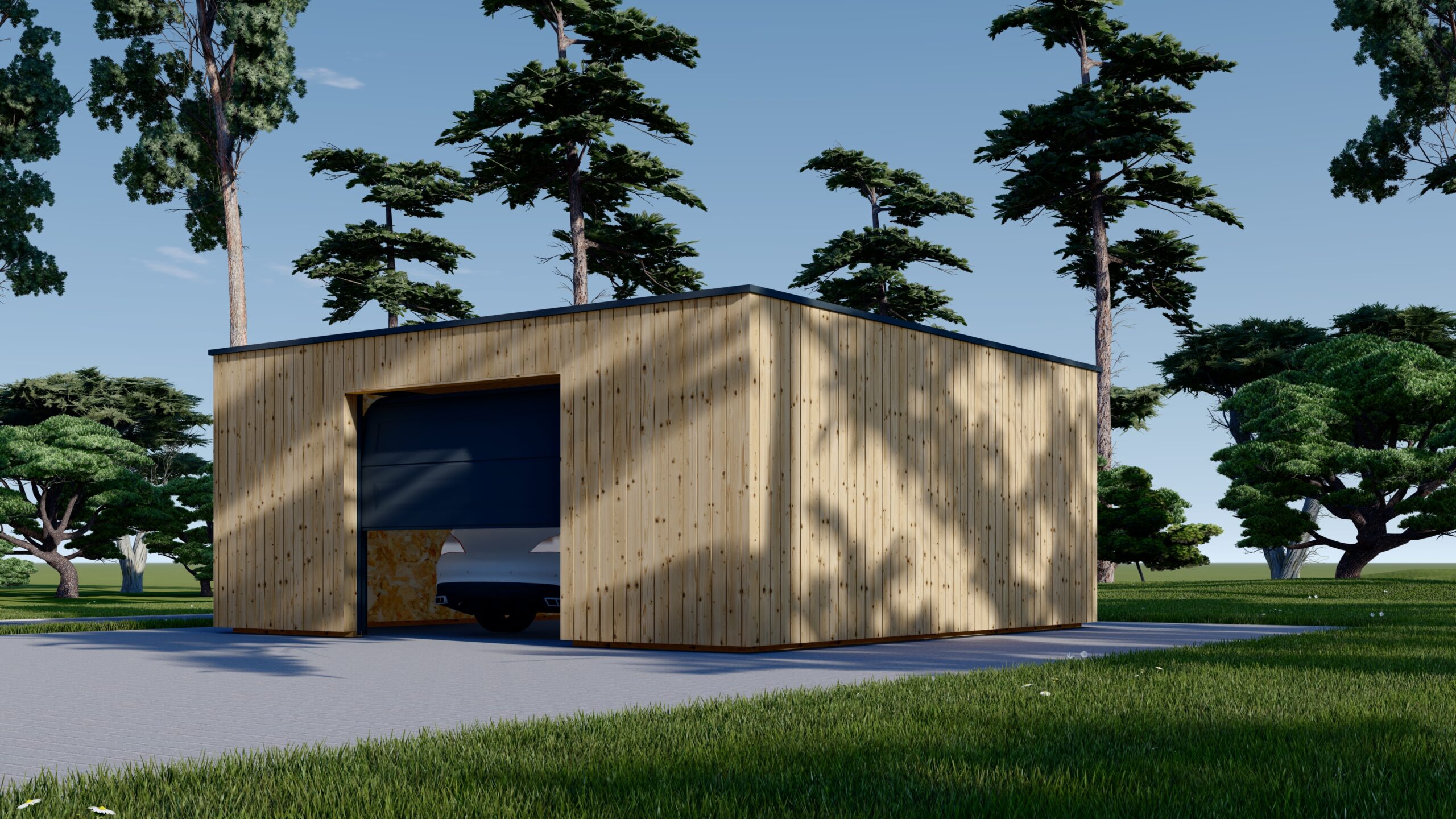Holzgarage mit Flachdach (34mm + Holzverschalung), 6x6m, 36m²