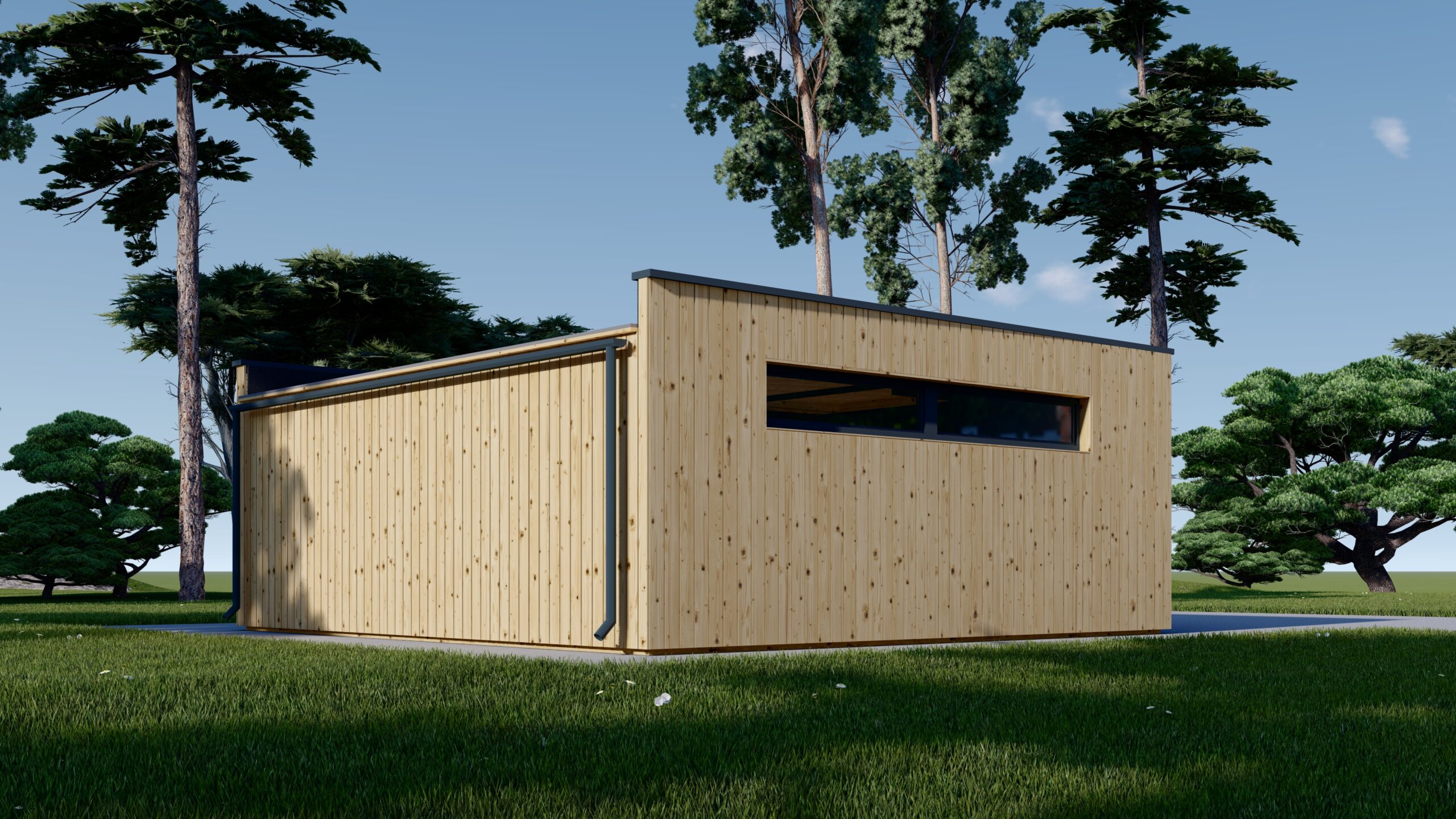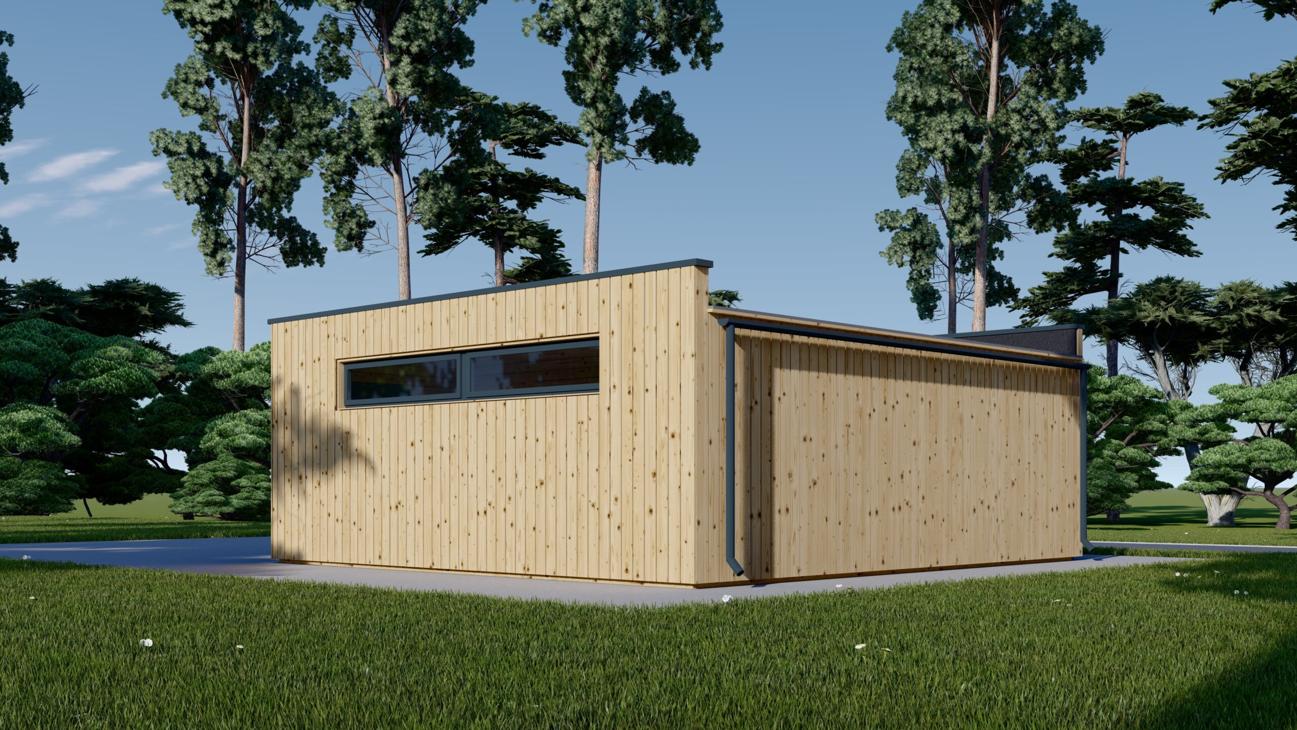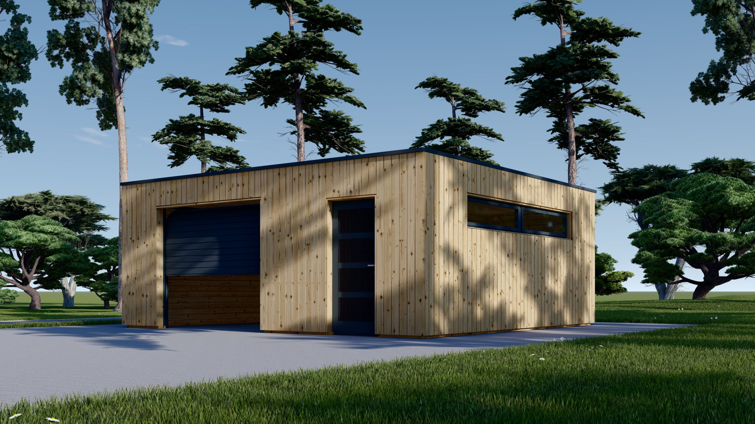 Holzgarage mit Flachdach Plus (34mm + Holzverschalung), 6x6m, 36m²