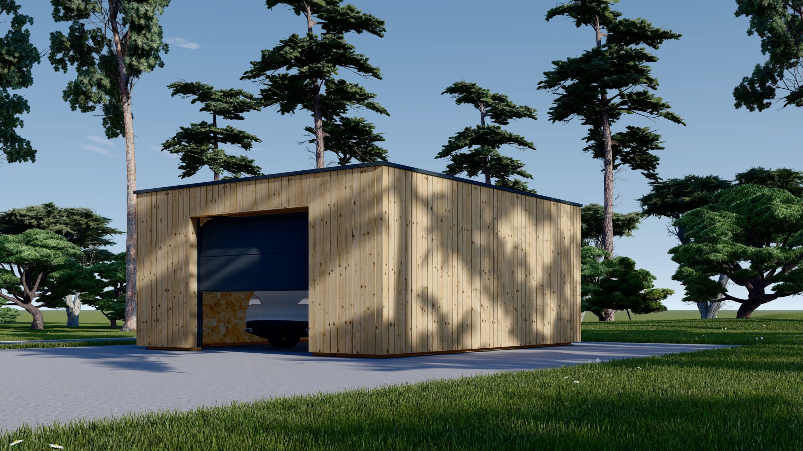 Holzgarage mit Flachdach (34mm + Holzverschalung), 6x6m, 36m²