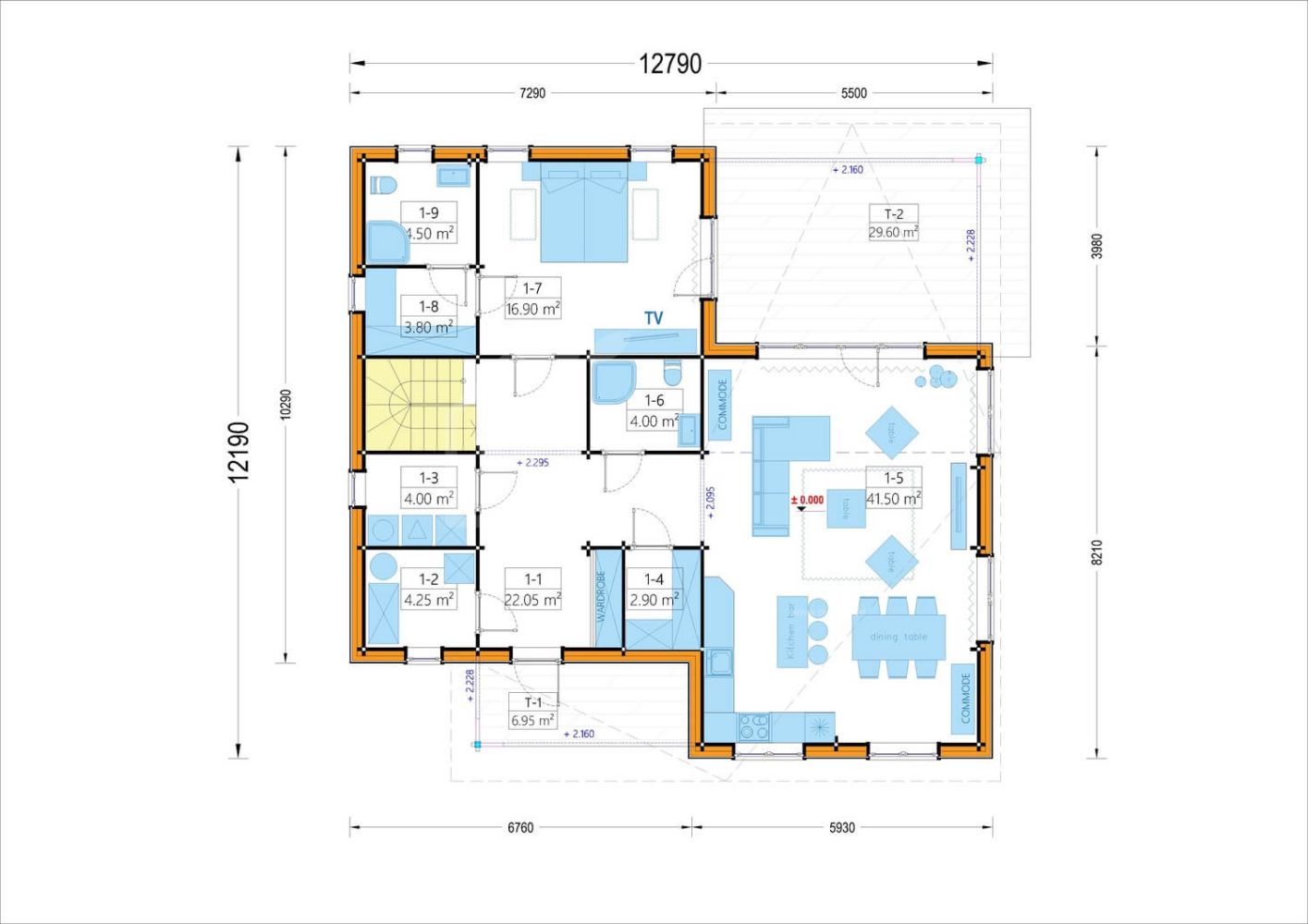 Dieses Fertighaus aus Holz bietet Wohnqualität auf höchstem Niveau dank seiner ausgezeichneten Wärmedämmung. Mit einer Dachisolierung von 300 mm, isolierten Böden (150 mm) und Wänden (200 mm) wird ein Höchstmaß an Wärme- und Wohnkomfort erreicht. Egal, ob Sie es als Ferienhaus oder als Hauptwohnsitz nutzen, Sie werden das ganze Jahr über in einer warmen und gemütlichen Umgebung leben können.