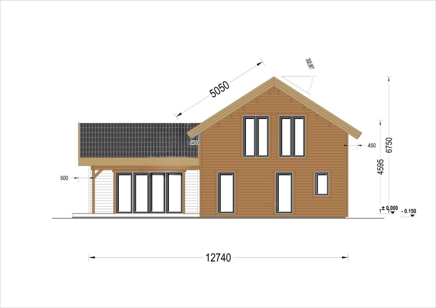 Premium Holzhaus KLAGENFURT Isoliert, 66 mm + Holzverschalung), 150 m²