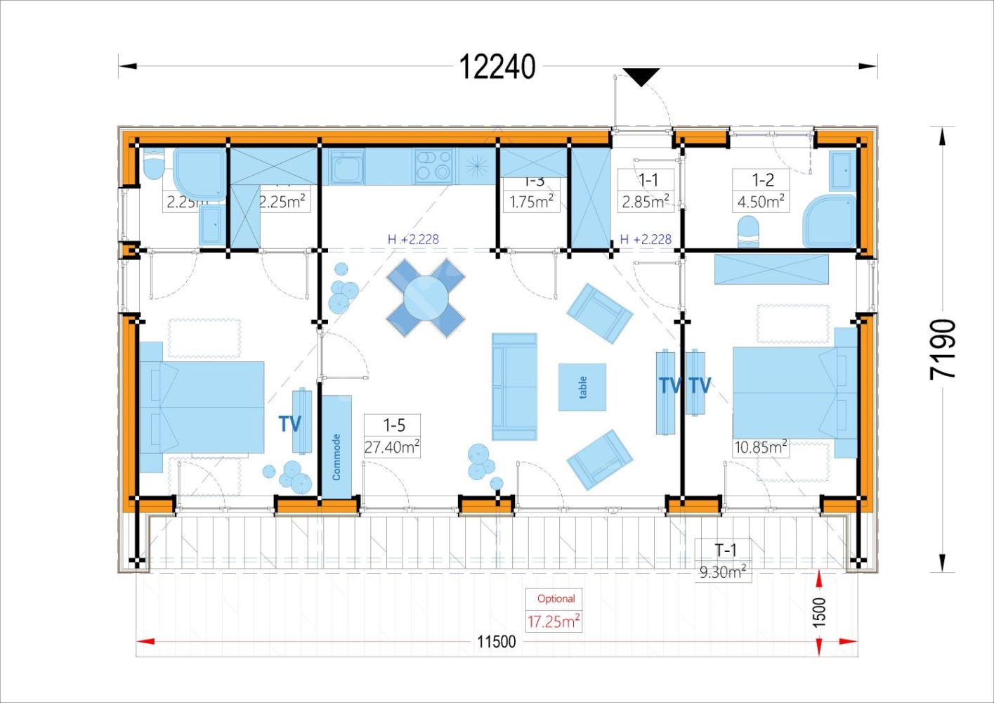 Holzhaus KULM 2 (66 mm + Holzverschalung) 63 m² Isoliert