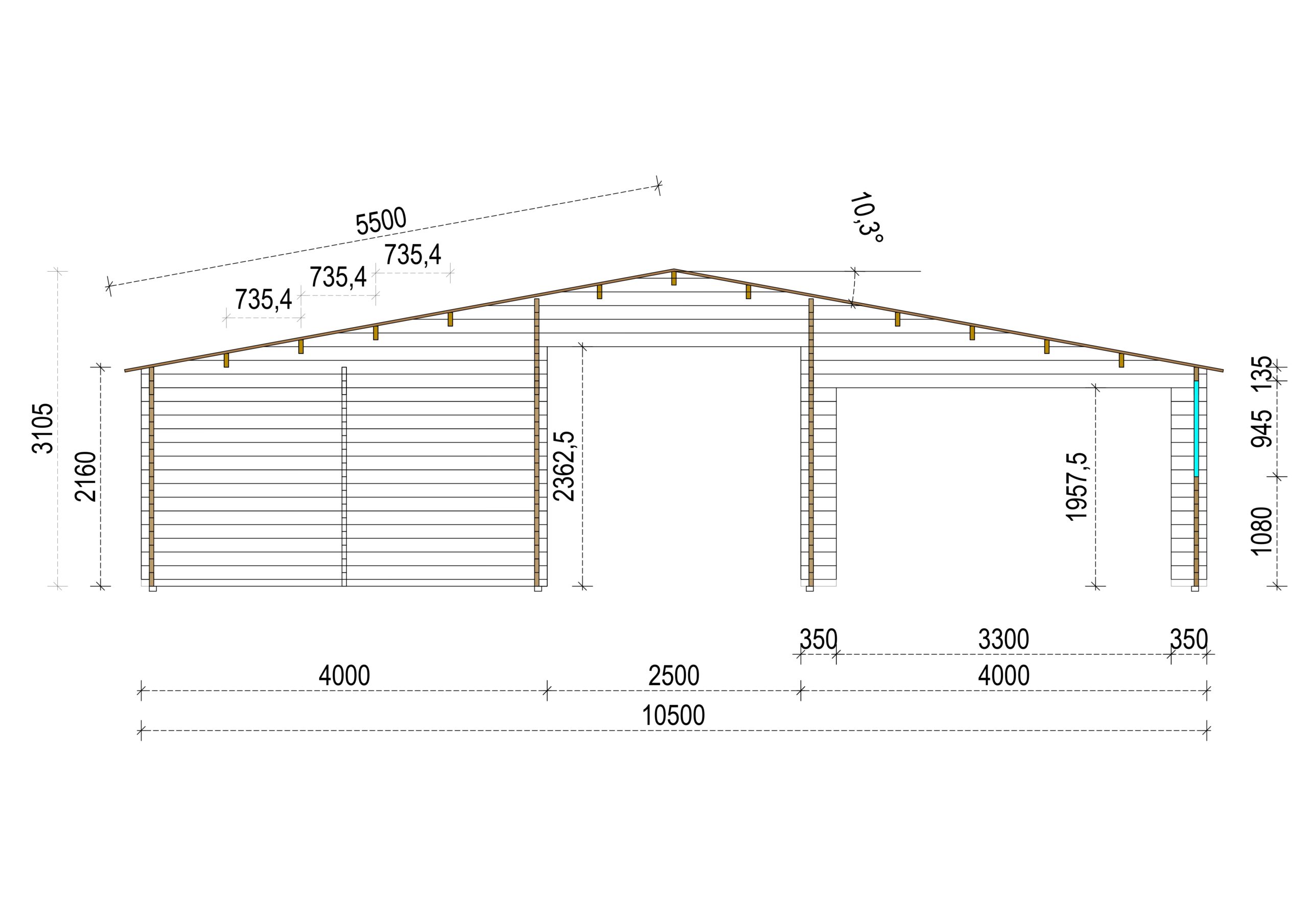 Erhalten Sie ein Dach, das Beständigkeit verspricht! Unsere verstärkte Dachkonstruktion setzt auf robuste Giebel und Dachsparren (45 mm x 135 mm oder 45 mm x 270 mm), um eine dauerhafte Stabilität zu gewährleisten und Ihr Dach vor möglichen Verformungen zu schützen.