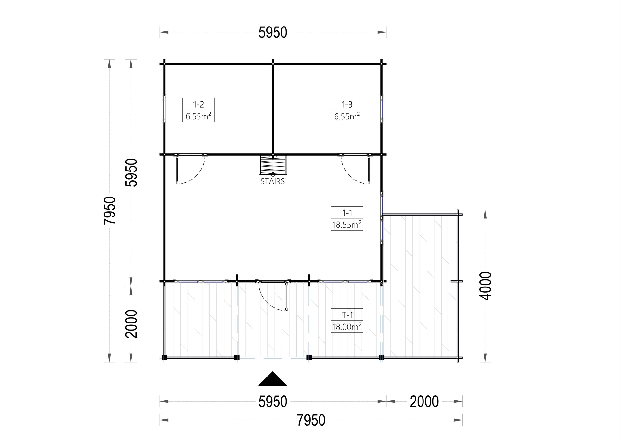 Das Premium Blockbohlenhaus Innsbruck zeichnet sich durch eine effiziente Raumplanung und einen geräumigen Schlafboden aus. Hier sind die herausragenden Merkmale dieses Modells:
