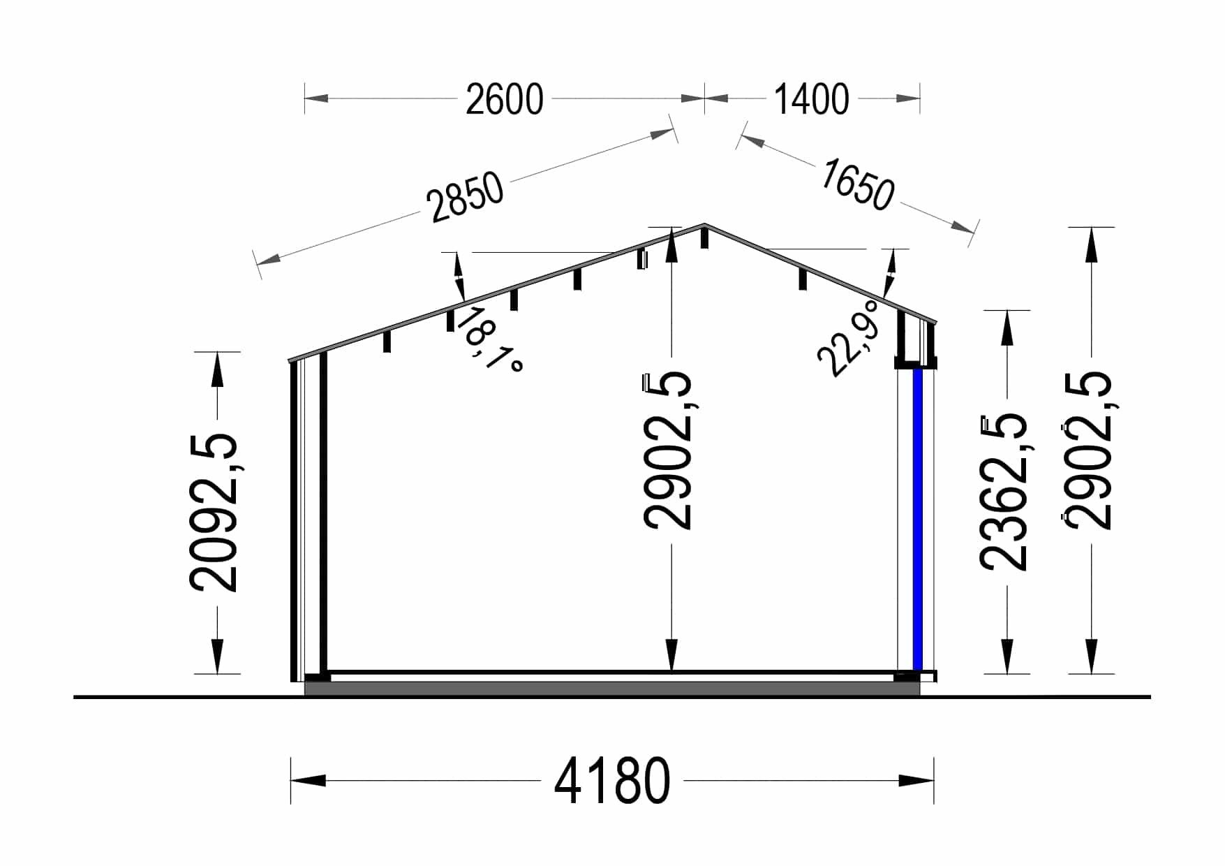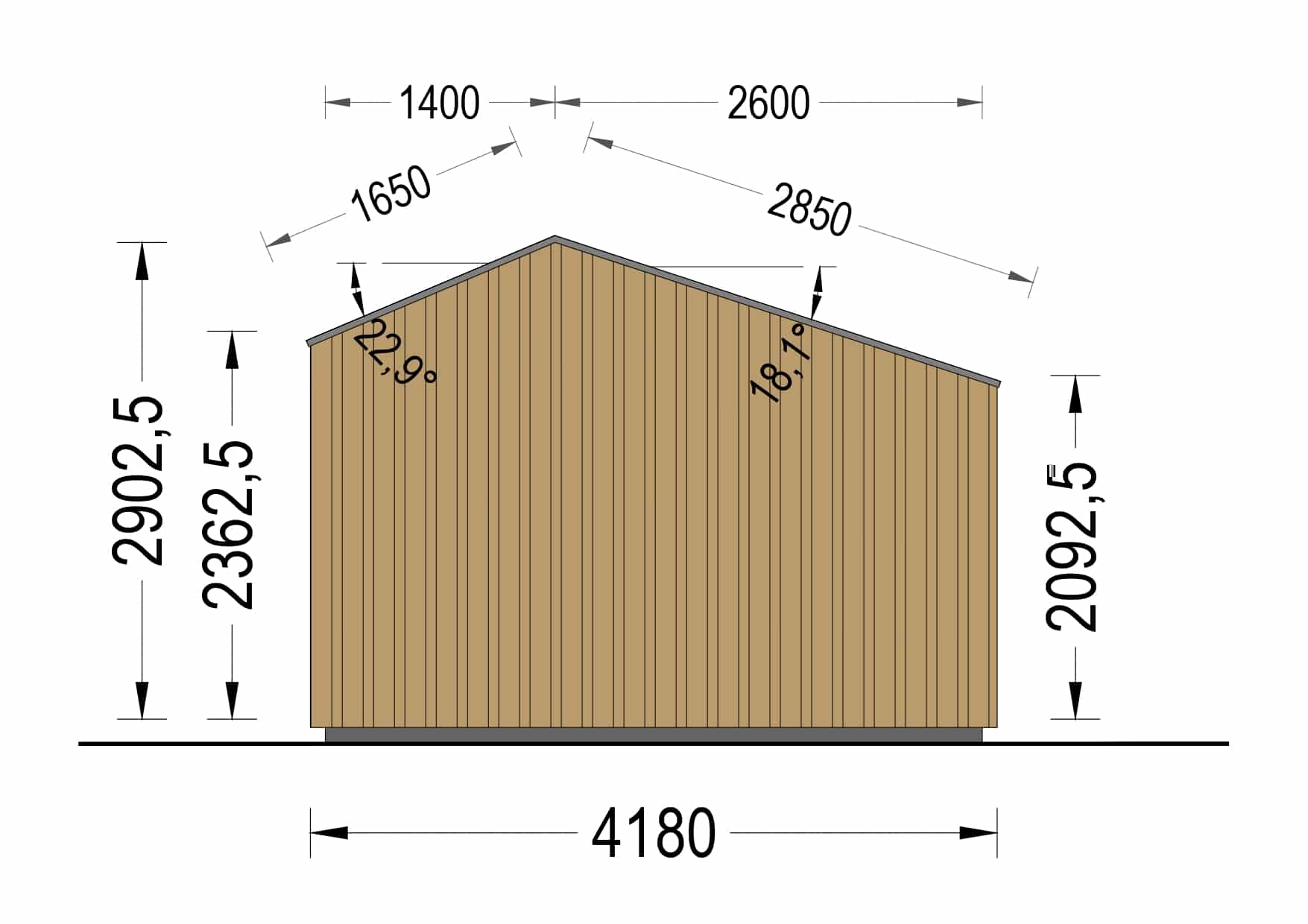 Erhalten Sie ein Dach, das Beständigkeit verspricht! Unsere verstärkte Dachkonstruktion setzt auf robuste Giebel und Dachsparren (45 mm x 135 mm oder 45 mm x 270 mm), um eine dauerhafte Stabilität zu gewährleisten und Ihr Dach vor möglichen Verformungen zu schützen.