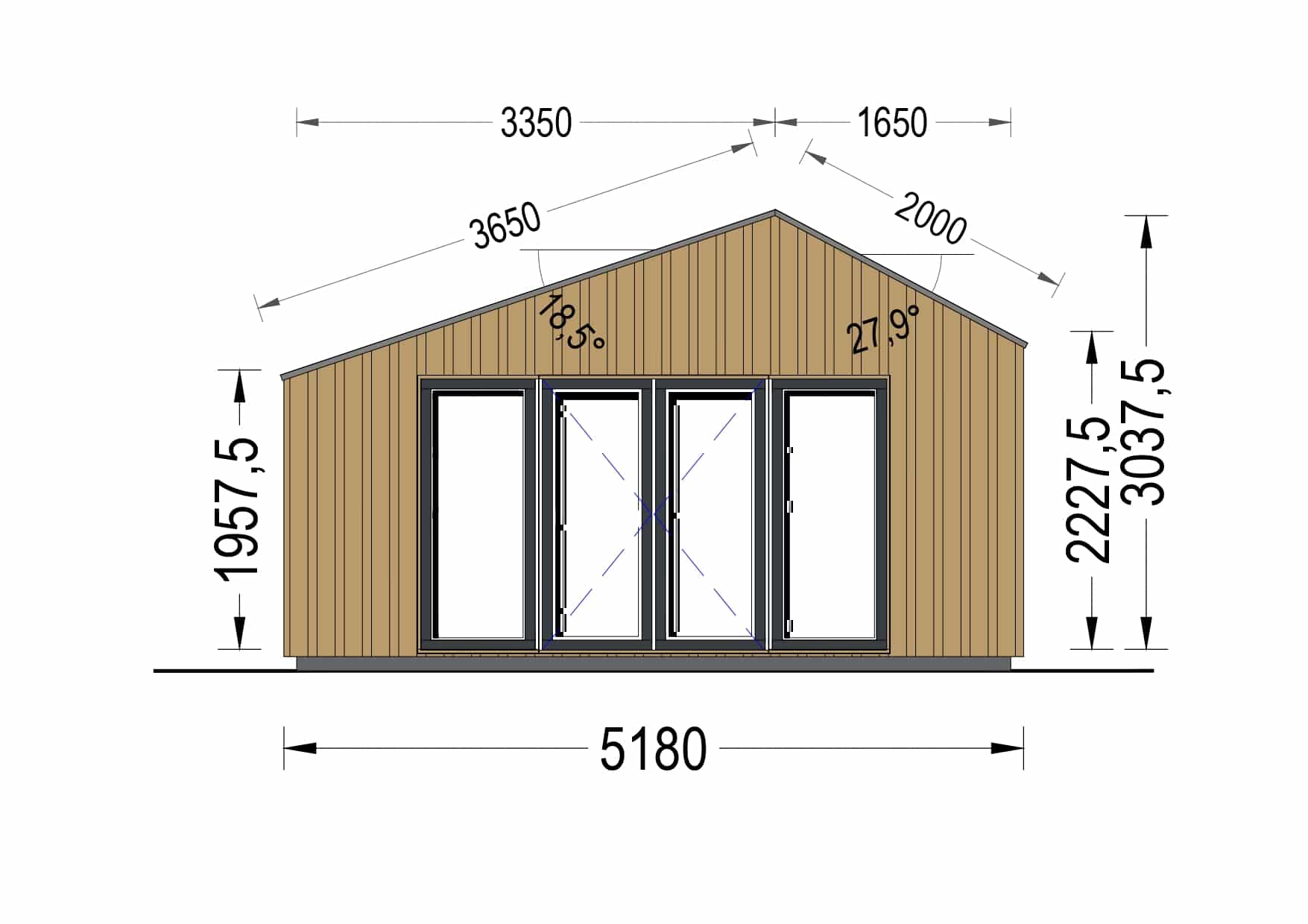 Gartenhaus ANTON (34mm + Holzverschalung ), 5x4m, 20m²